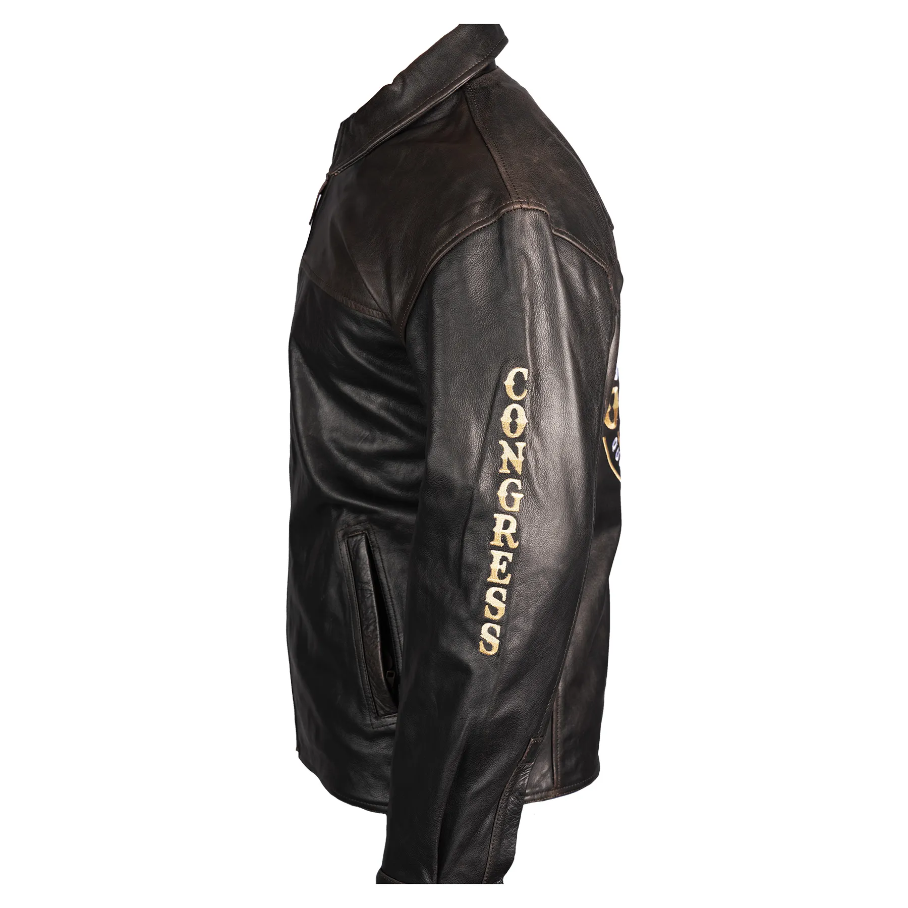 The Quarter Horse Congress Ladies Fit All-Leather Champion Jacket is the ideal walking trophy. Show your support for the event with the official 2023 leather jacket. Jackets do not include placing patches or customization.
