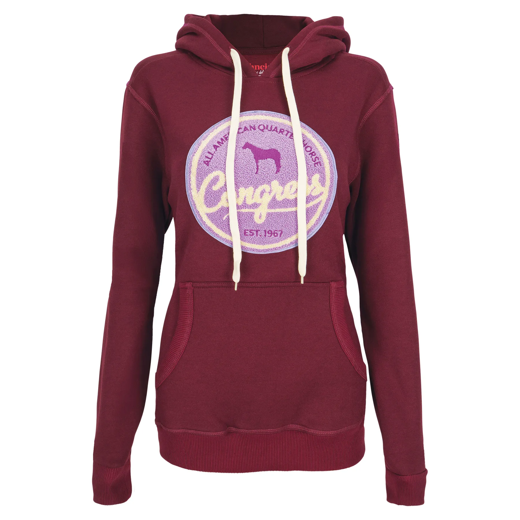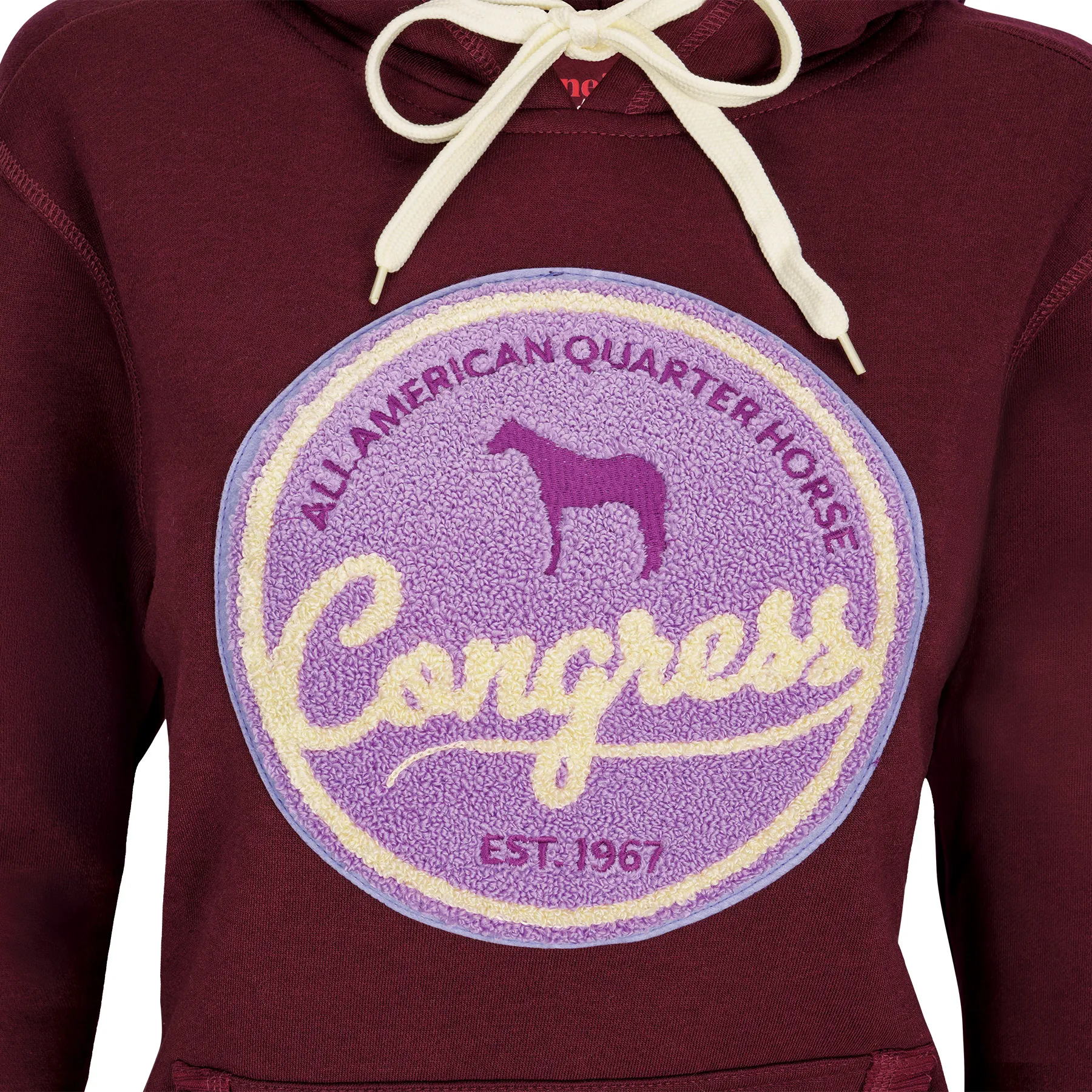 Show your Congress spirit in cozy, colorful style with the 2025 Congress Hoodie featuring a playful chenille patch on the front. Designed with comfort and everyday wear in mind, this hoodie is made from a warm cotton/poly fleece blend that's soft to the touch and tough enough for repeat wear. Whether you're layering up at the barn, relaxing at home, or strolling the showgrounds, this fun sweatshirt adds personality to your Congress collection.