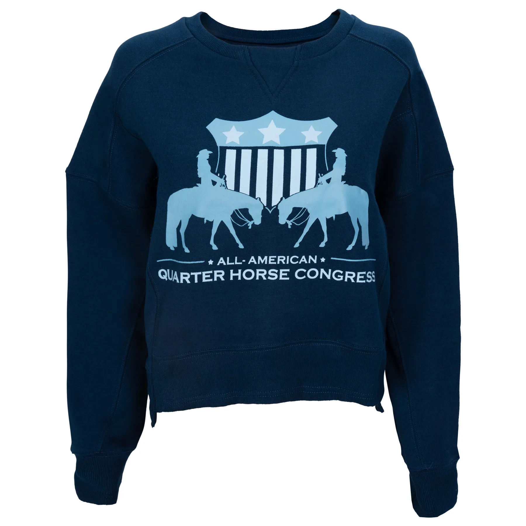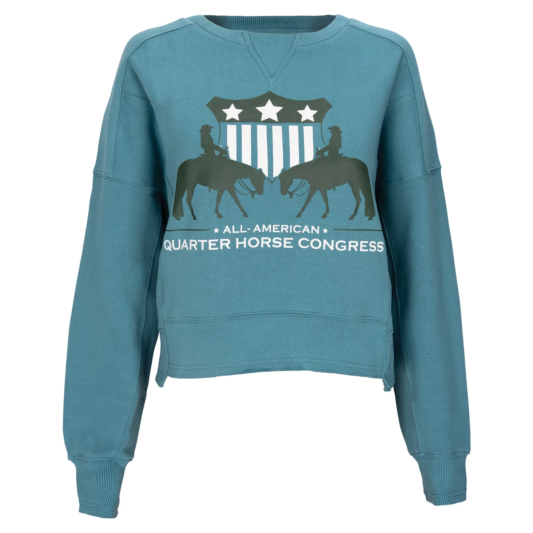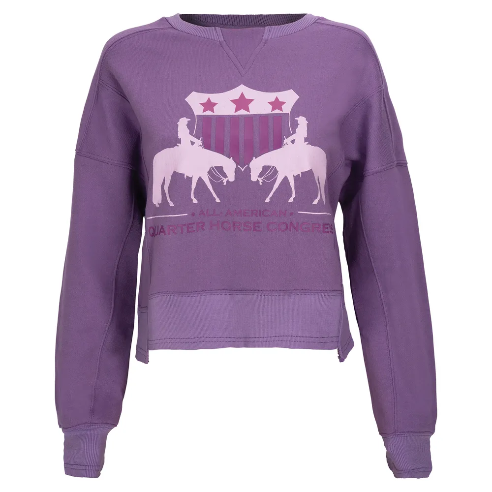 Cozy up in effortless Congress style with the 2025 Ladies Boxy Crew Sweatshirt. This ultra-comfy layer features an oversized, boxy fit perfect for lounging or layering through cooler days at the barn or showgrounds. Tonal Congress logos add a modern, minimalist vibe, while the soft fleece and durable stitching make it a sweatshirt you'll reach for again and again.