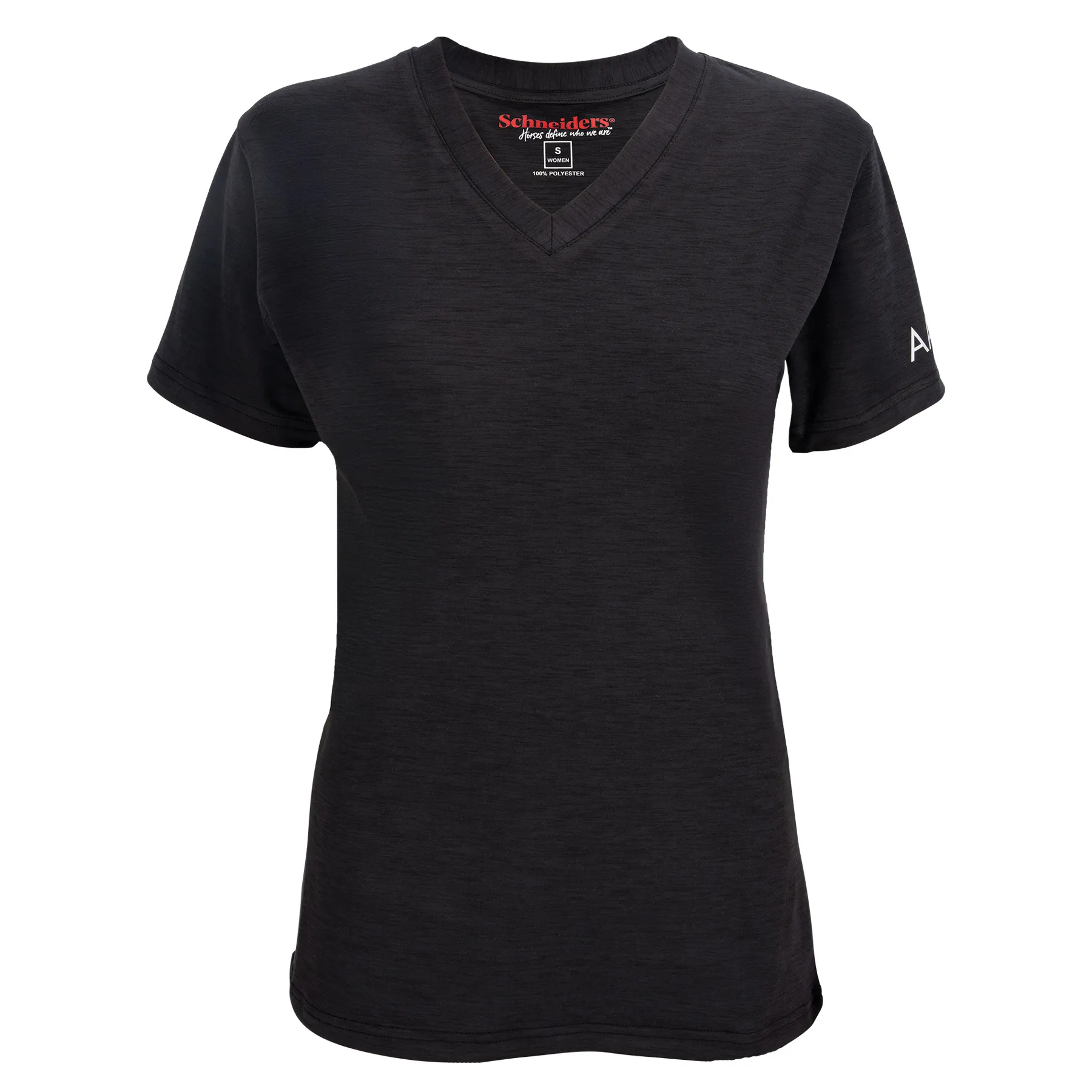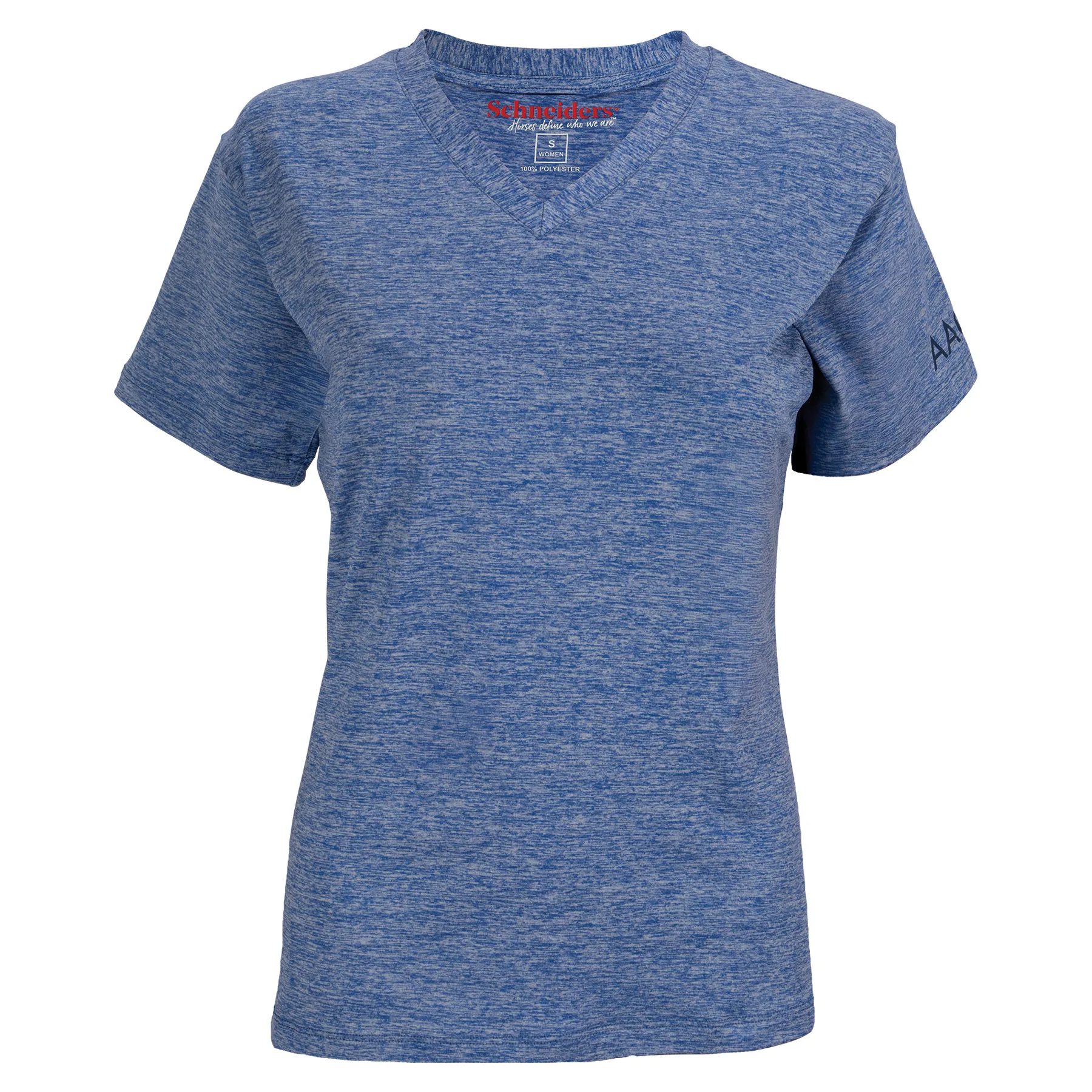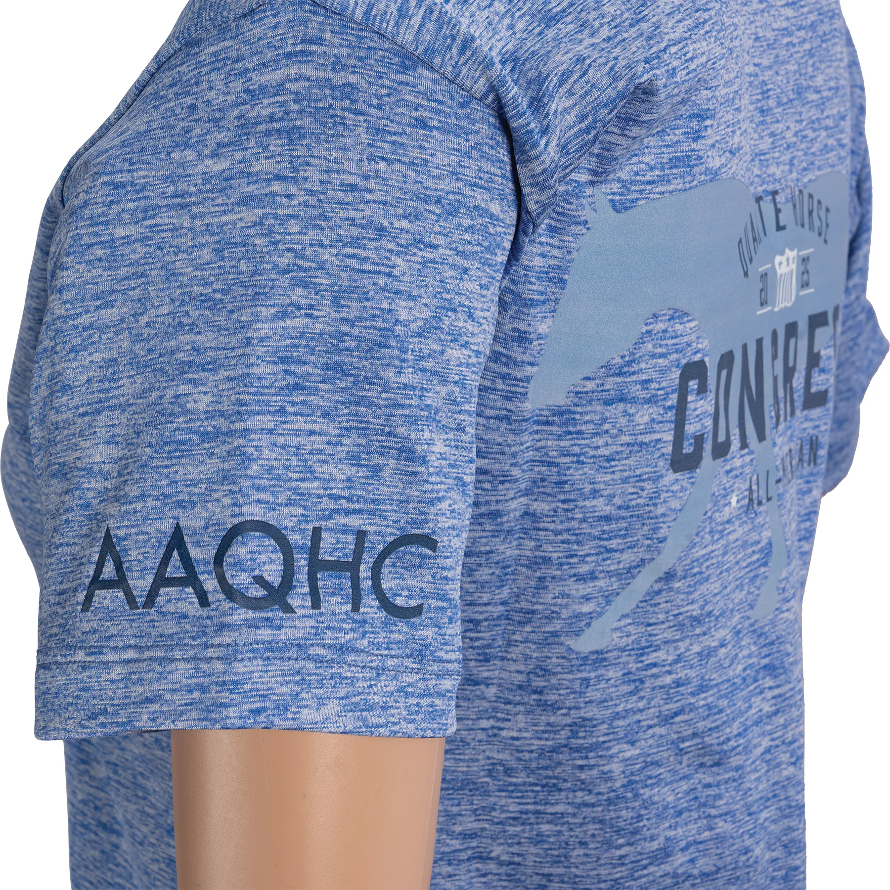 Stay cool, confident, and Congress-ready in the 2025 Ladies V-Neck Performance Shirt. Designed with a flattering feminine fit and made from breathable heathered performance Lycra, this shirt keeps you comfortable whether you're riding, running errands, or relaxing ringside. A tonal pleasure horse graphic on the back adds subtle equestrian style, while the sleeve hem text logo completes the look with a polished finish.