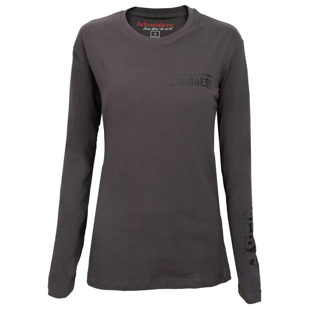 Celebrate your Congress pride in comfort with the 2025 Unisex Cotton Long Sleeve T-Shirt. This lightweight long sleeve tee is crafted from ultra-soft ring-spun cotton for breathable wear that moves with you. Whether you're layering for chilly mornings or rocking it solo, the relaxed fit and stylish bit logo on the back make it a versatile favorite for every equestrian.