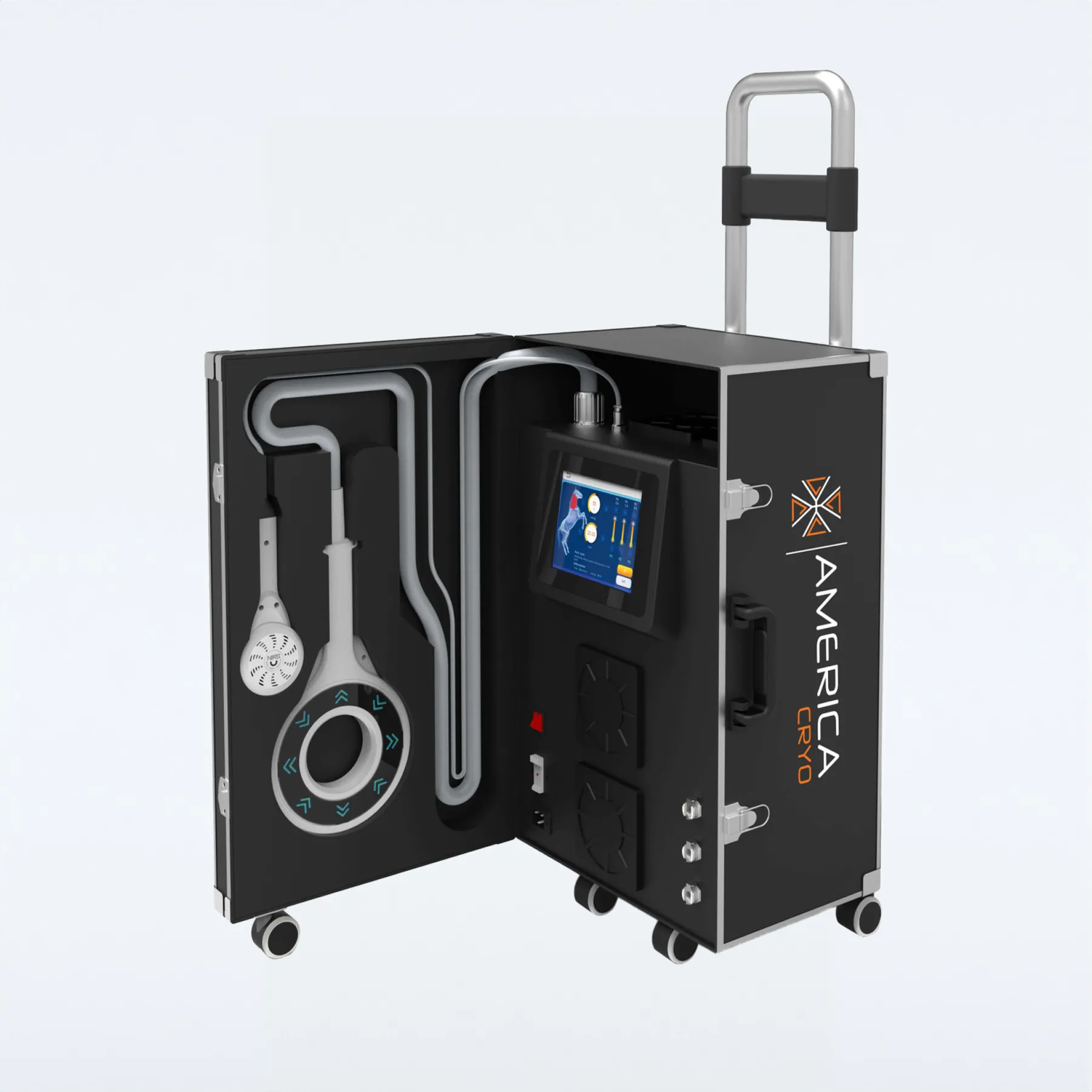 Experience cutting-edge equine therapy with the America Cryo Equine PEMF and Laser, a revolutionary device that combines Pulsed Electro-Magnetic Field (PEMF) therapy and laser treatment in one powerful, portable unit. Designed for veterinarians, trainers, and rehabilitation specialists, this non-invasive system enhances soft tissue healing, reduces pain, and improves mobility in elite equine athletes. Whether for injury recovery, osteoarthritis management, or post-workout maintenance, this dual-therapy approach delivers optimal results with ease. (Product training strongly recommended before use - see FAQ for details.)