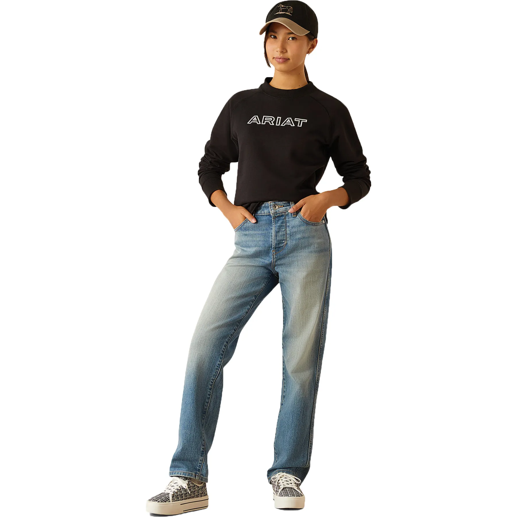 This everyday favorite gets a Team Ariat twist with bold style and unbeatable comfort. Made from ultrasoft fleece, the Benicia pullover features the cozy overlapped hem kids love, now updated with a luxe velour logo for a pop of equestrian flair. Whether they're headed to the barn or lounging at home, it's the sweatshirt they'll reach for again and again.