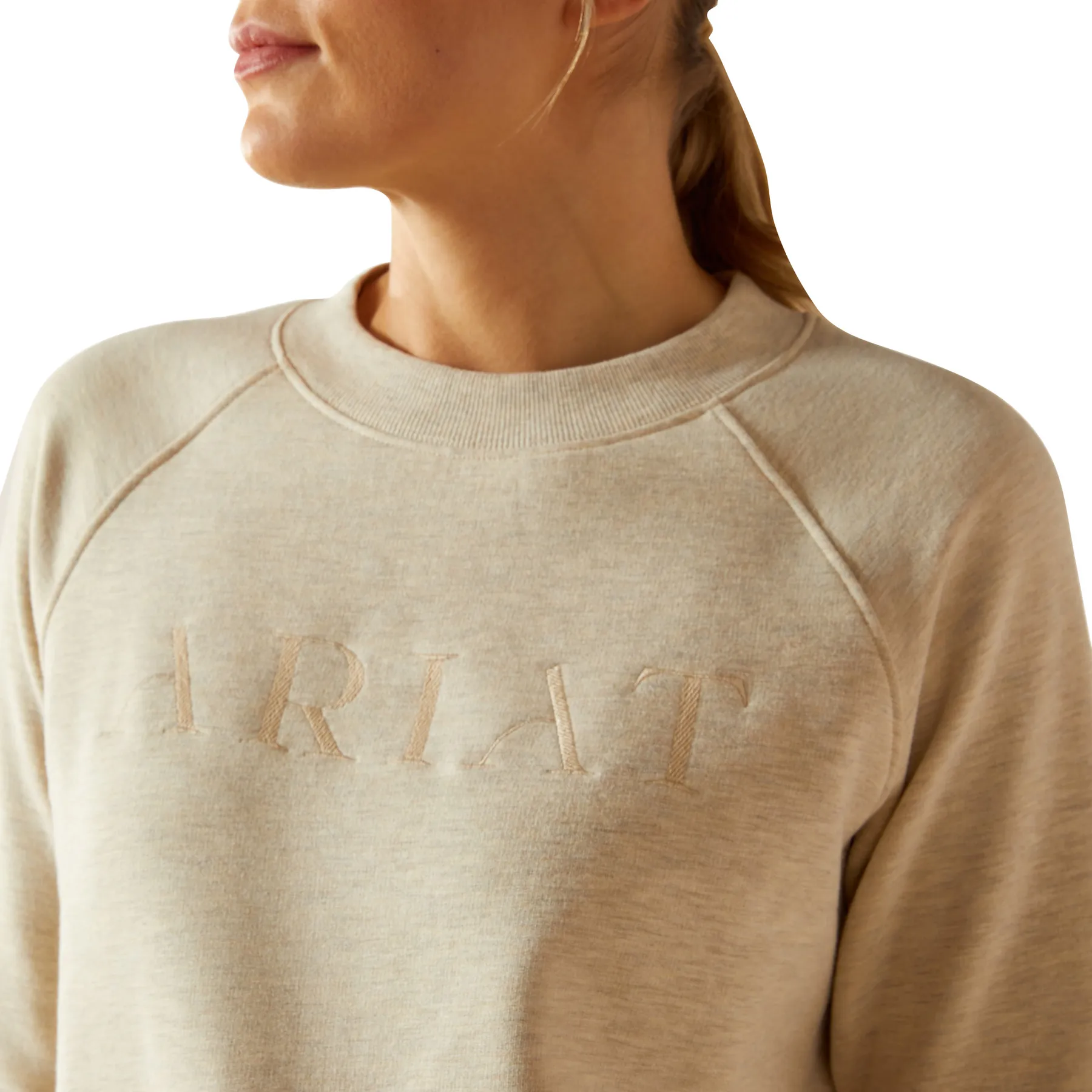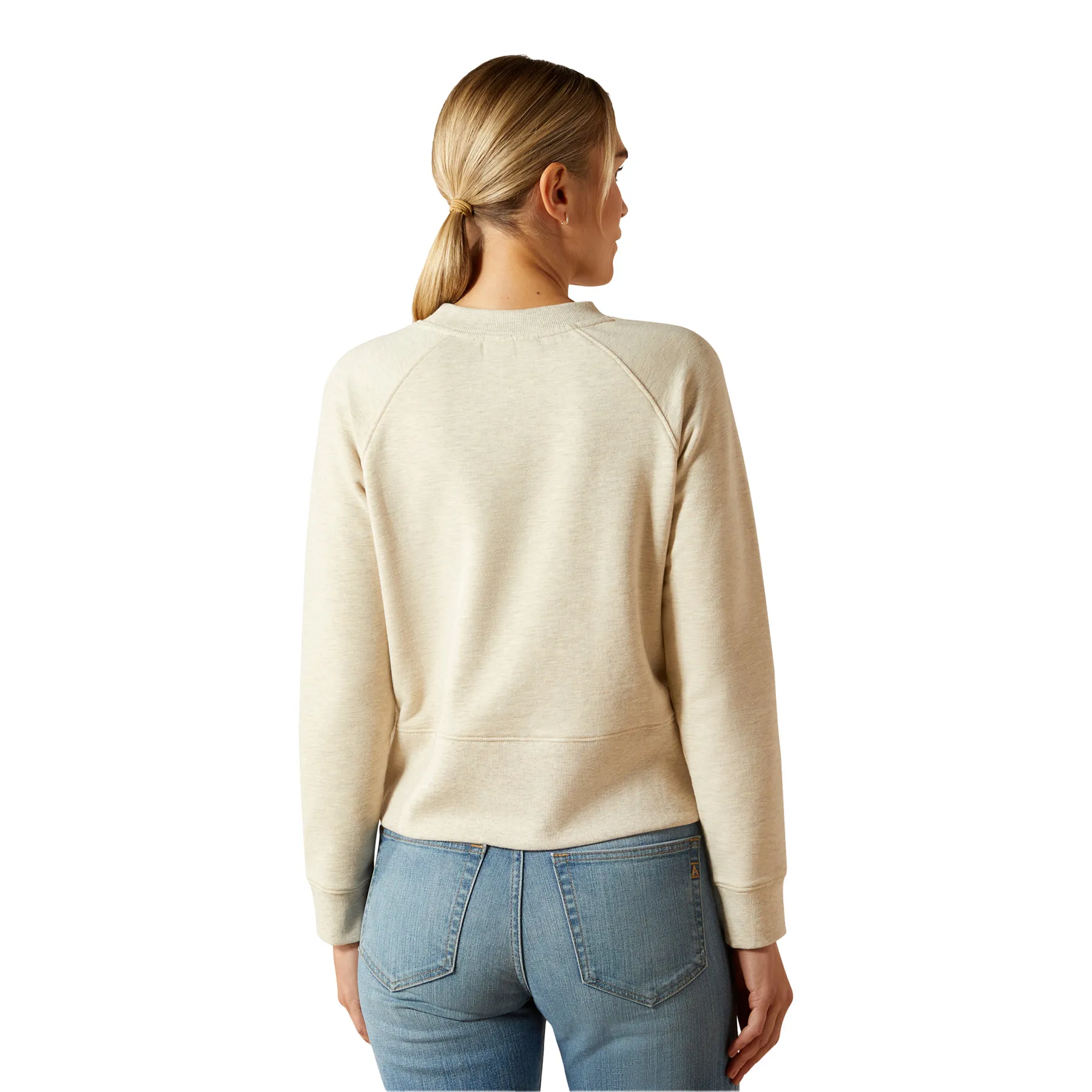 Keep it cozy in the barn with this retro-inspired crewneck sweatshirt. Made from a soft, brushed fleece blend of organic cotton and recycled polyester, it delivers laid-back comfort with a sustainable twist. An embroidered Ariat logo adds a clean, classic finish, perfect for layering at the barn or lounging on the weekend.