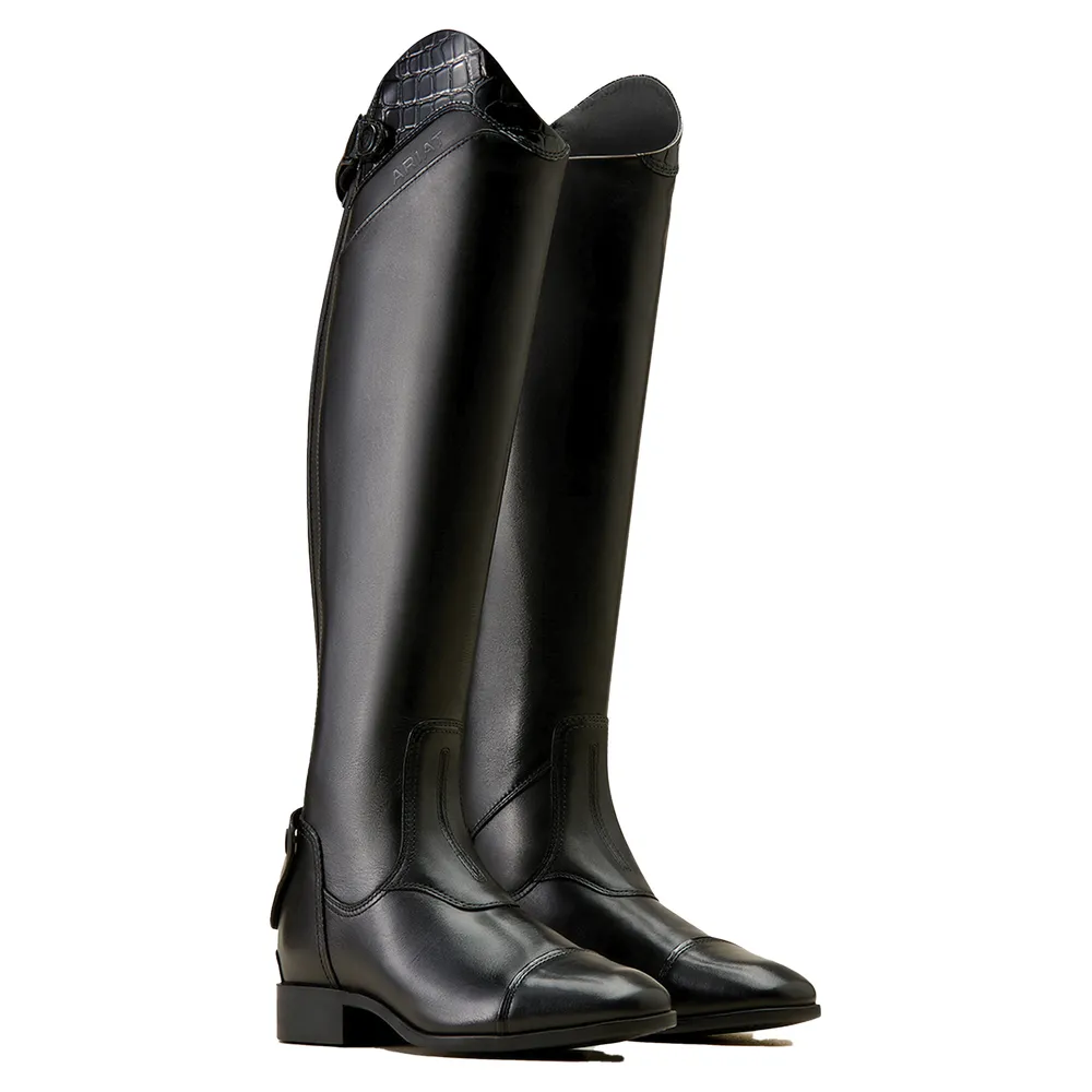 Command attention with the Ariat Ladies Palisade Show Boots, a bold blend of performance and high-end style. Featuring sleek full-grain leather and a striking patent croc-print cuff, these boots deliver a standout silhouette in and out of the ring. Built-in stretch and a contoured fit ensure all-day comfort, while Ariat's trusted technology supports every stride.