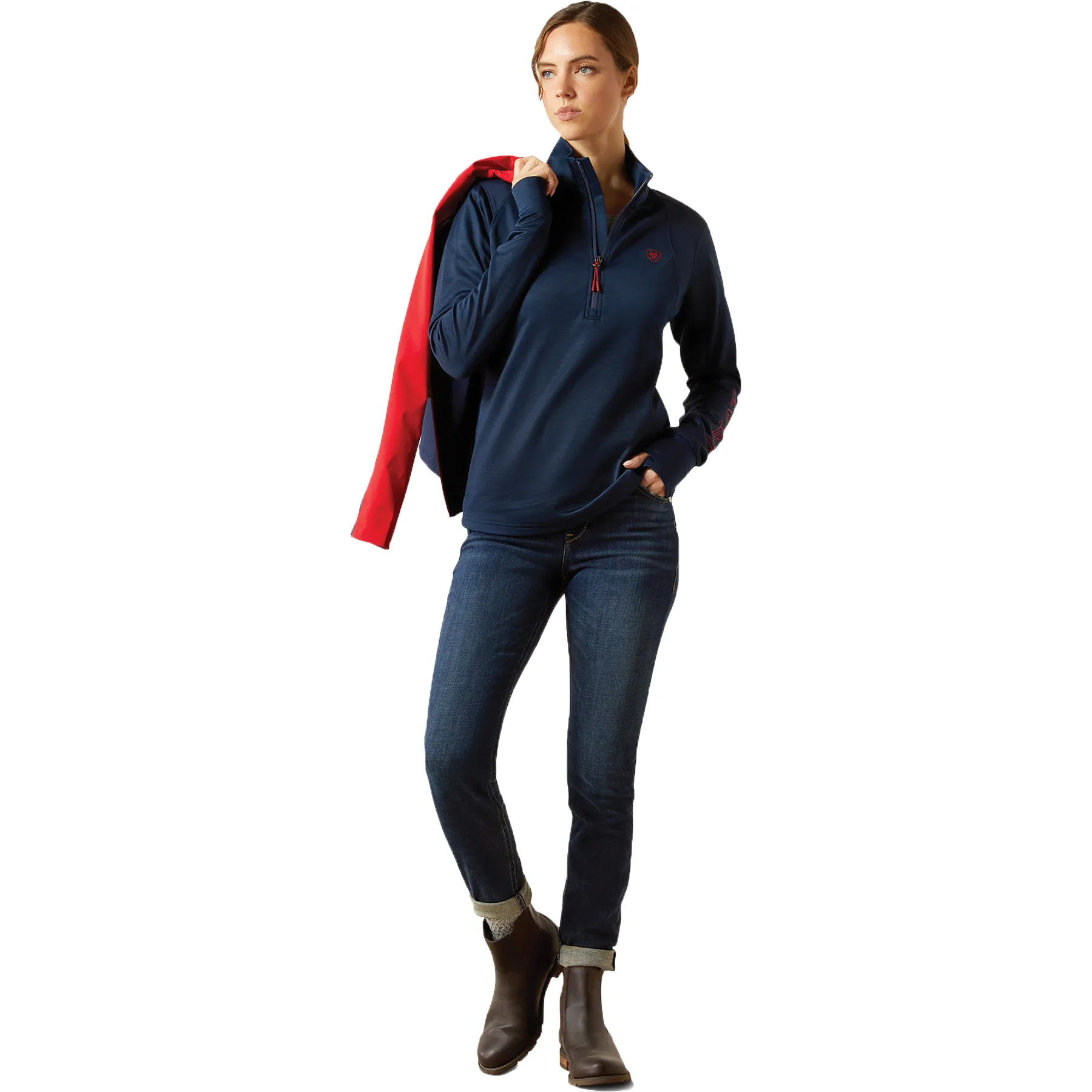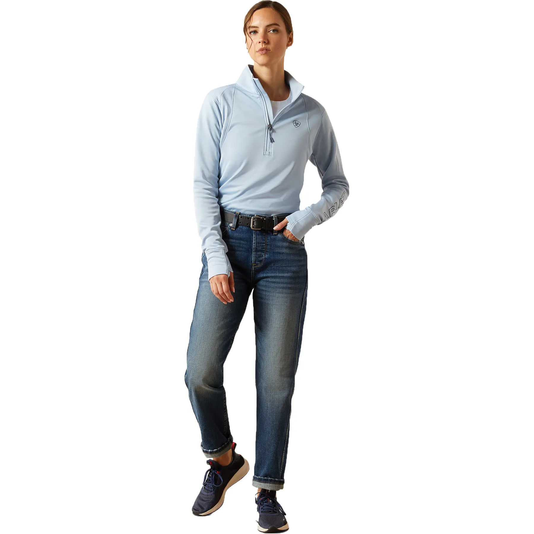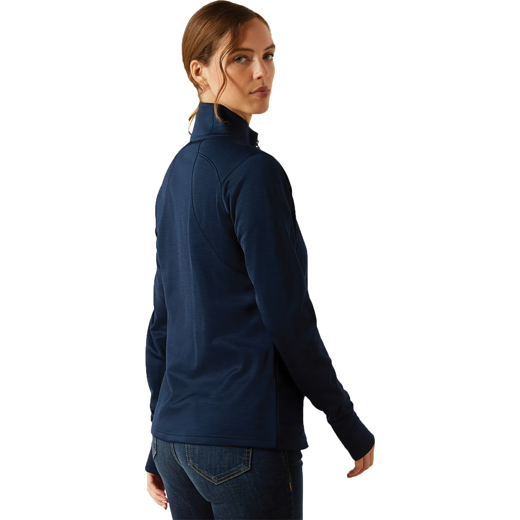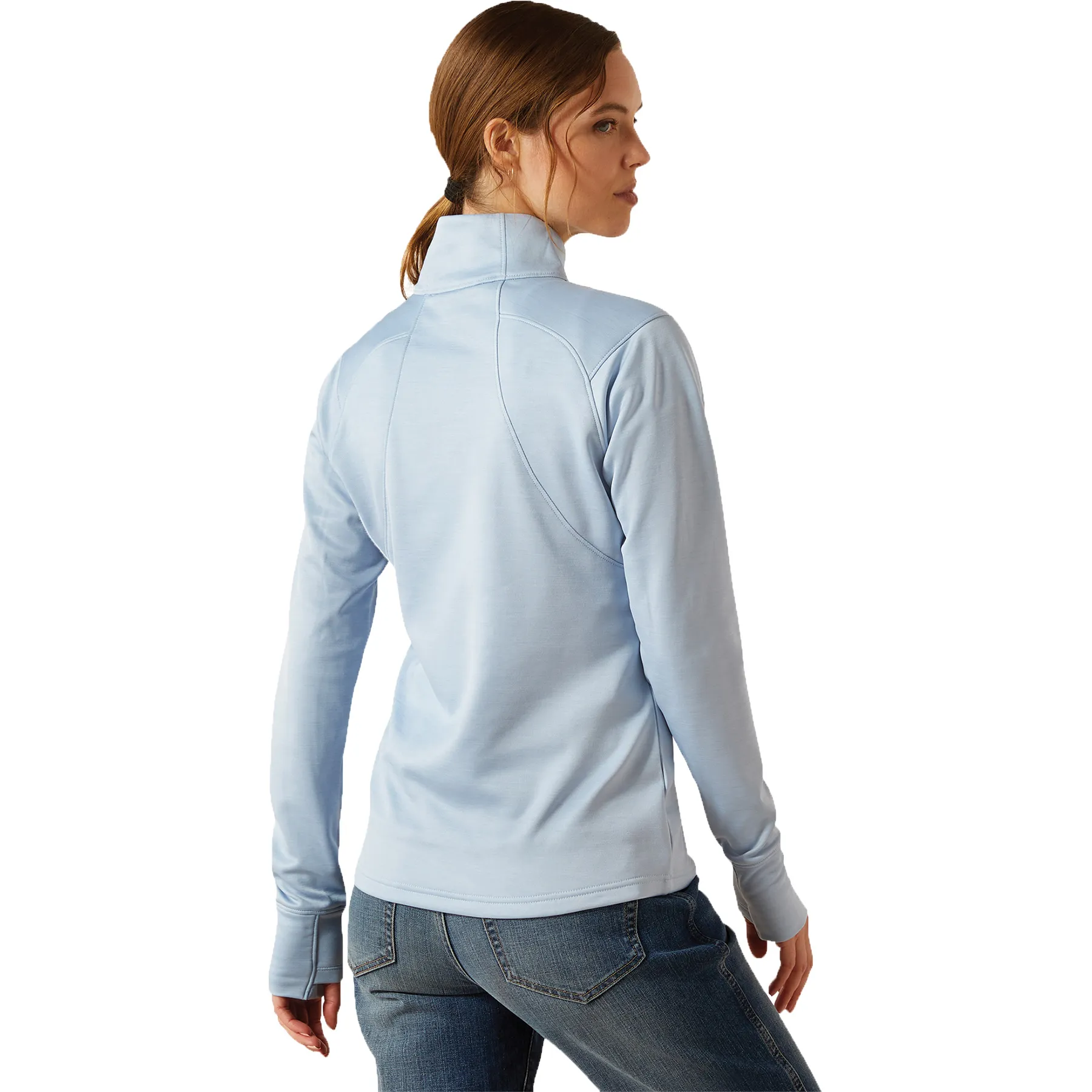 Stay dry, warm, and stylish in this close-fitting technical pullover built for performance. Crafted from recycled stretch fleece, it moves with you while offering cozy mid-weight warmth. Ariat's Moisture Movement Technology™ keeps sweat at bay, while thumbhole cuffs and subtle embroidery add both function and flair. Designed with sustainability in mind, it's the ideal layer for breezy barn days or cool morning rides.