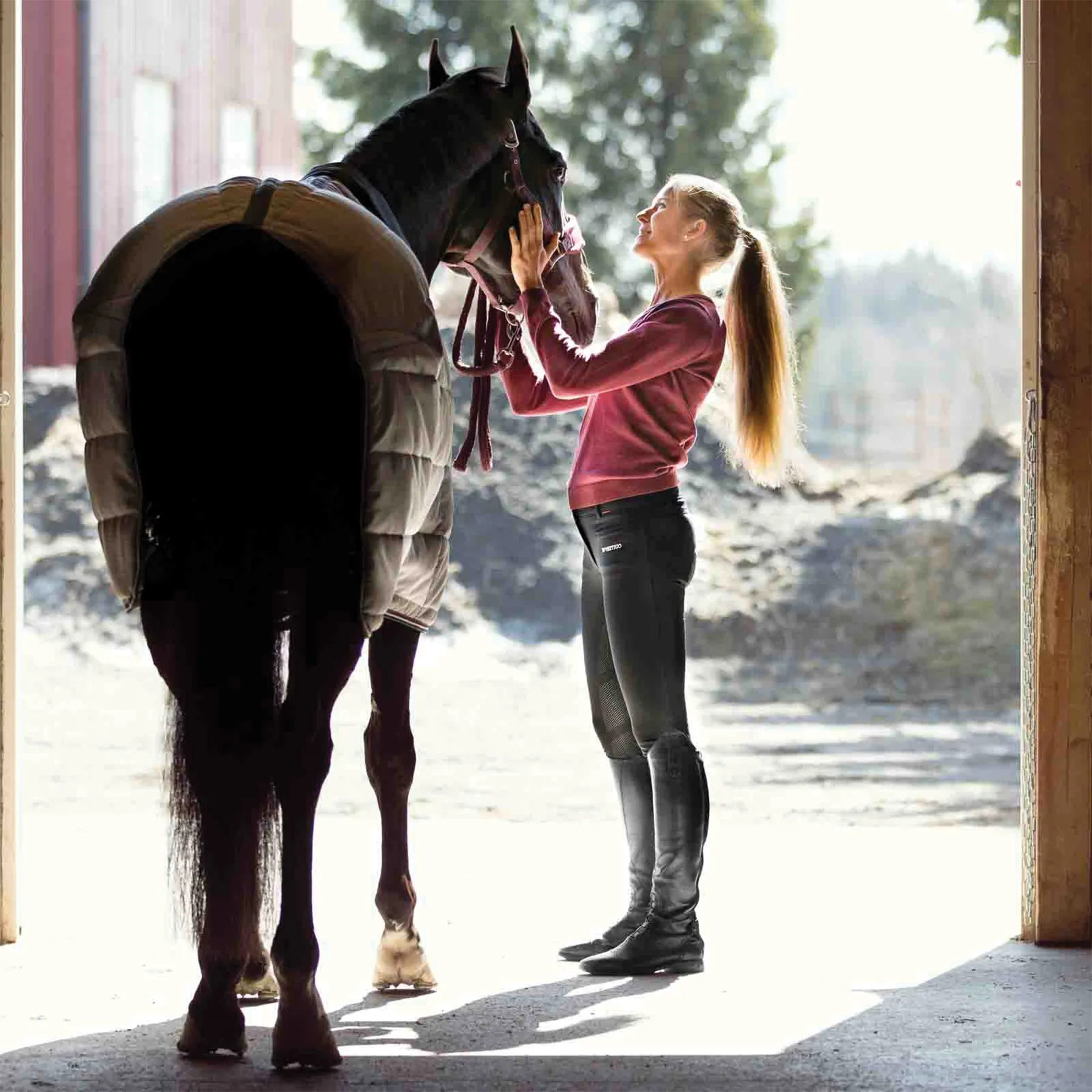 A perfect fusion of classic style and modern performance, the B Vertigo Ladies Tiffany Silicone Full Seat Breeches are designed for riders who want it all. These breeches offer a flattering, high-waist fit and a sleek silhouette while delivering high-tech functionality. The Opti-Pro fabric stretches with your every move, wicks moisture, and resists fading or losing shape. Whether you're in the arena or out on the trail, the silicone grip seat offers secure hold, while the calf stretch panel ensures maximum comfort in tall boots. The Tiffany breeches blend elegance and athleticism effortlessly.