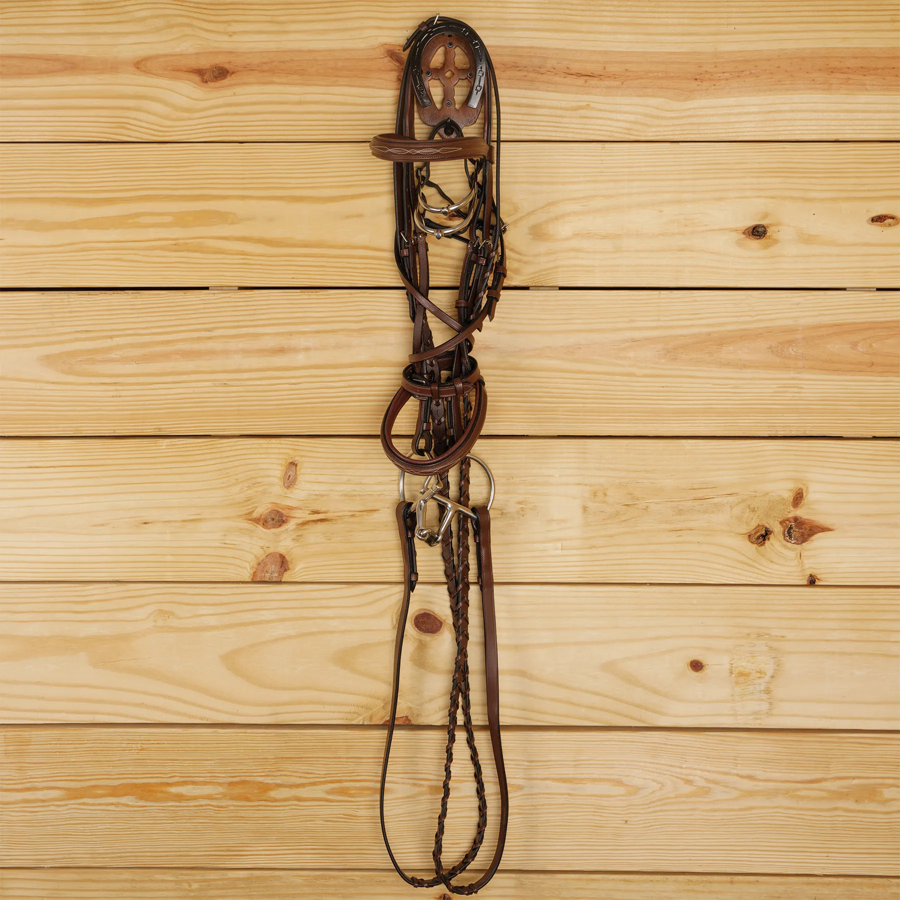 - Beautiful wood and black brass horseshoe bridle brackets add a touch of class without breaking the bank