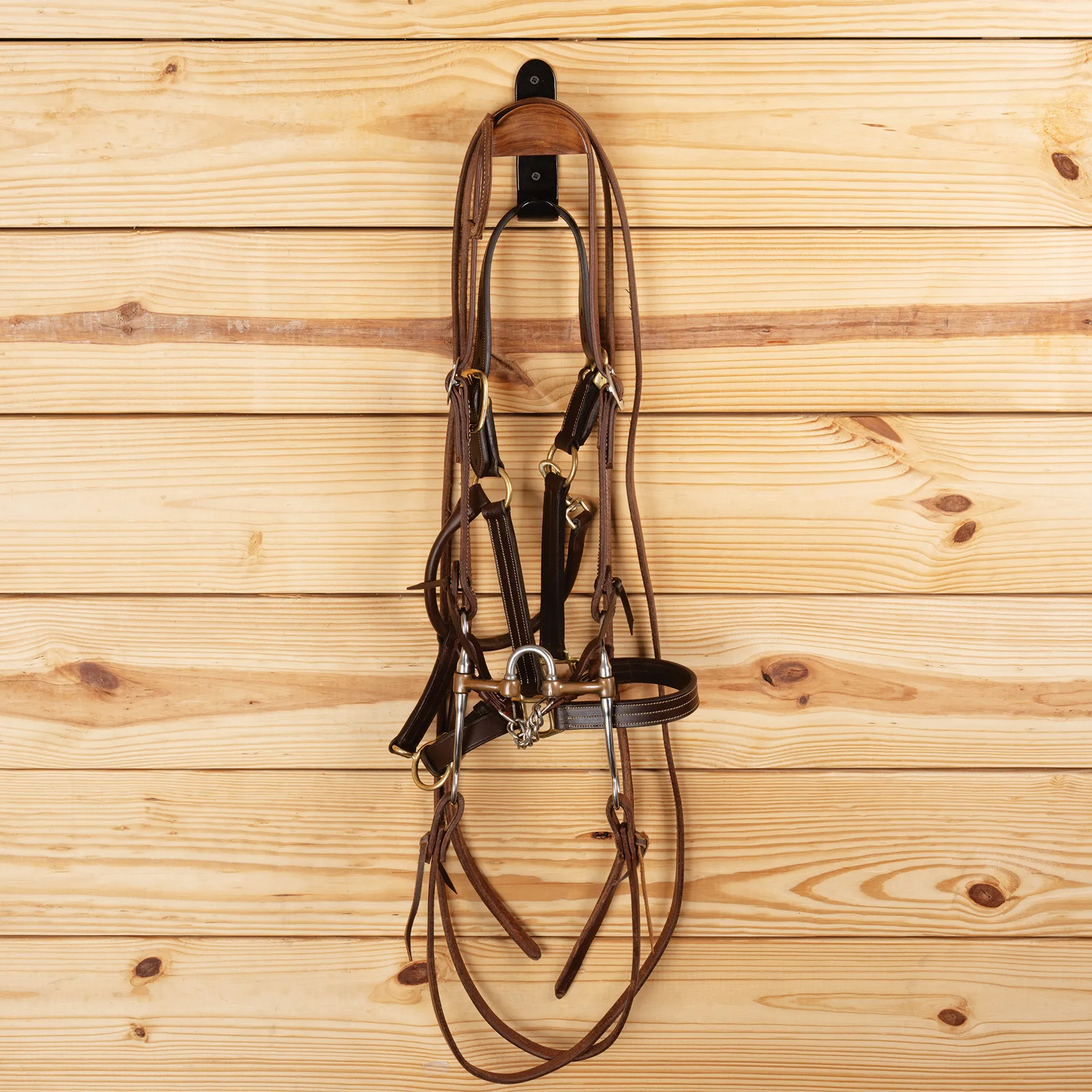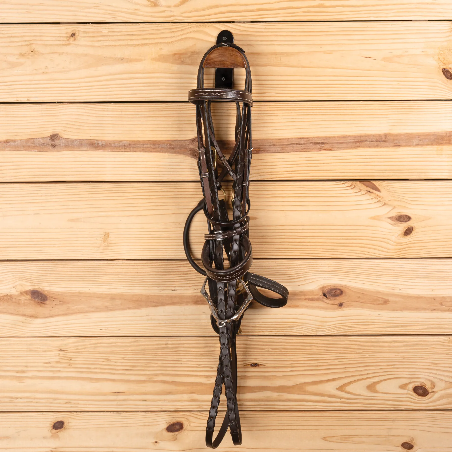 Add timeless elegance and smart functionality to your tack room with this beautifully designed bridle rack. Featuring a durable steel frame and rich acacia wood dome, it combines refined style with everyday practicality. Ideal for English crowns and equipped with a bonus bottom hook, it's perfect for organizing your tack room.