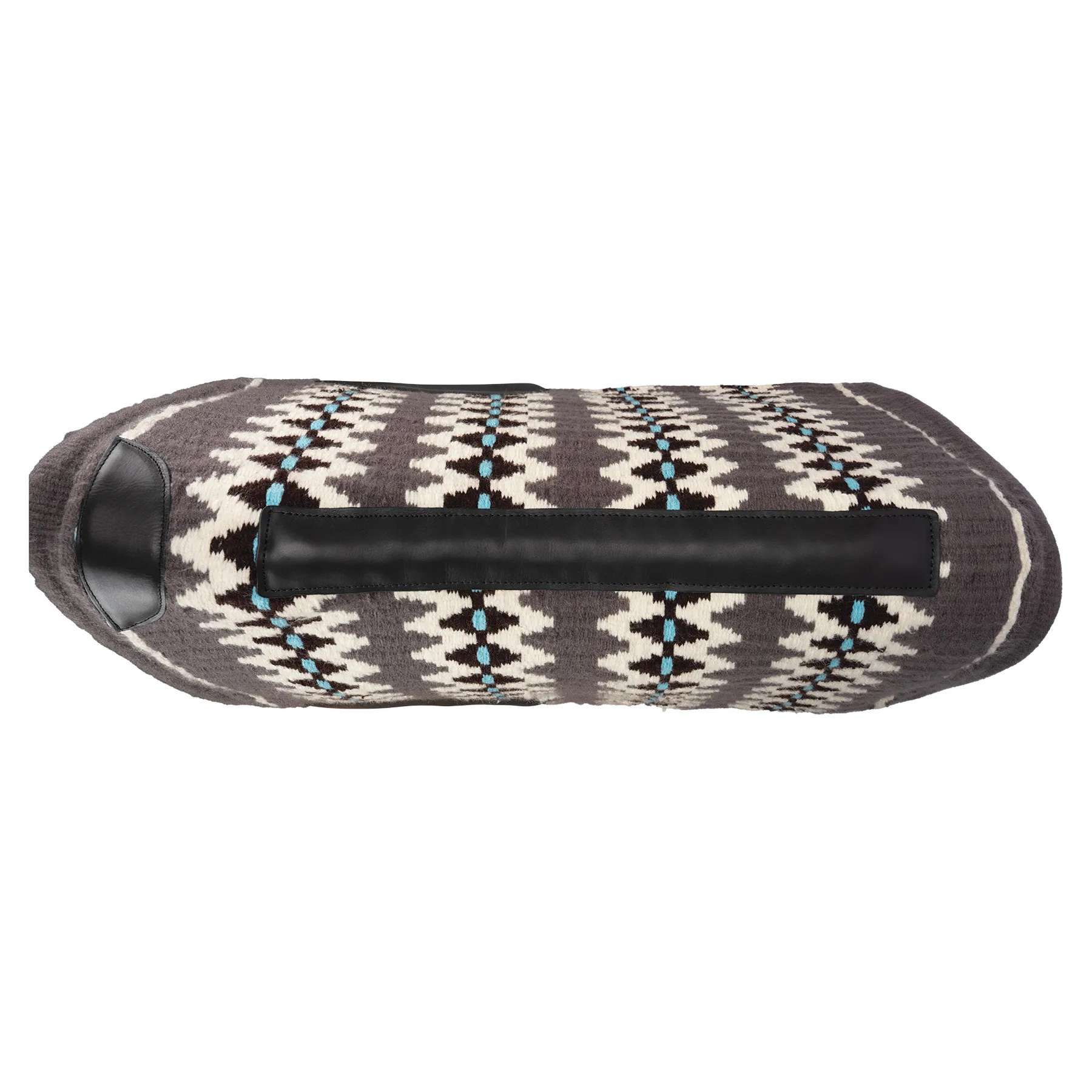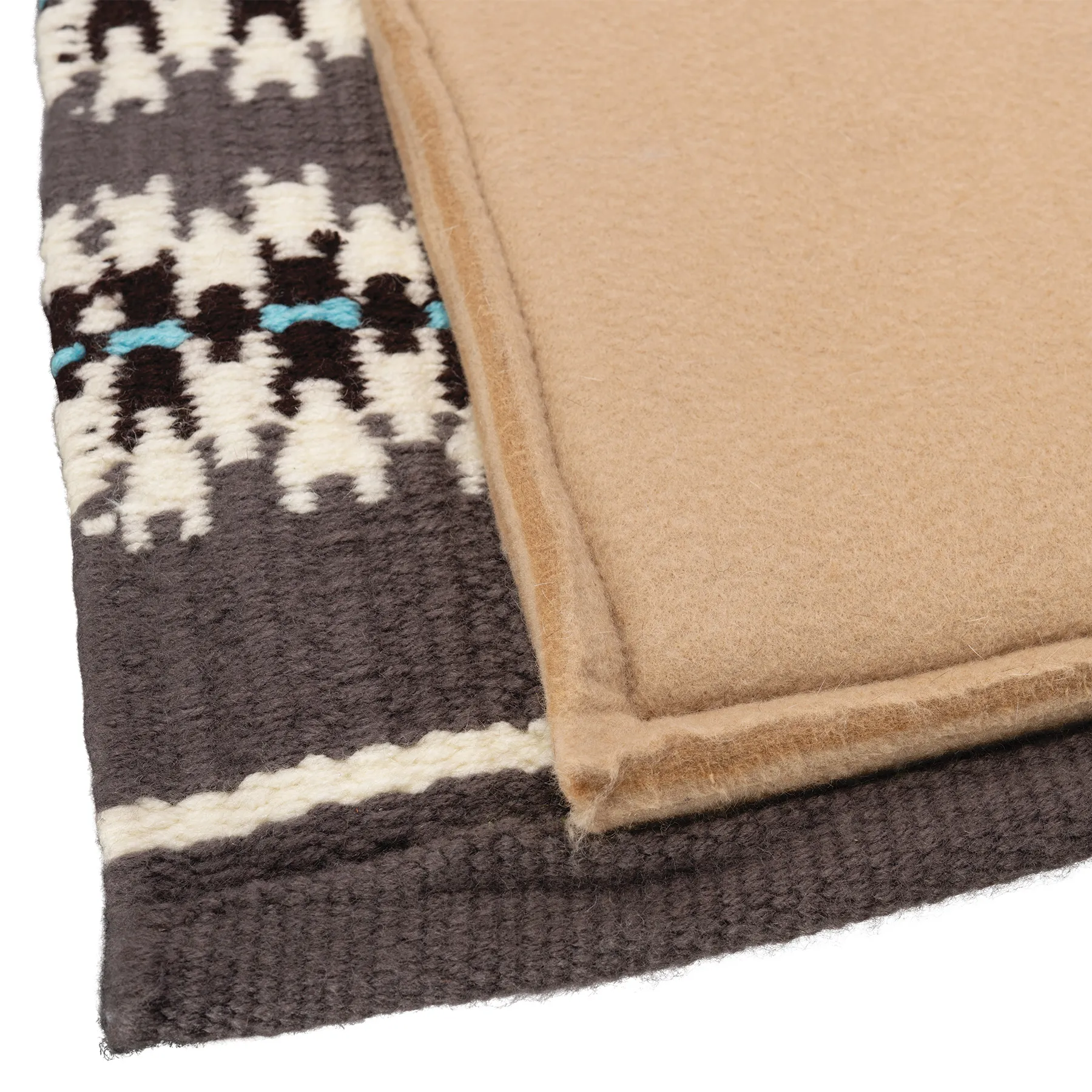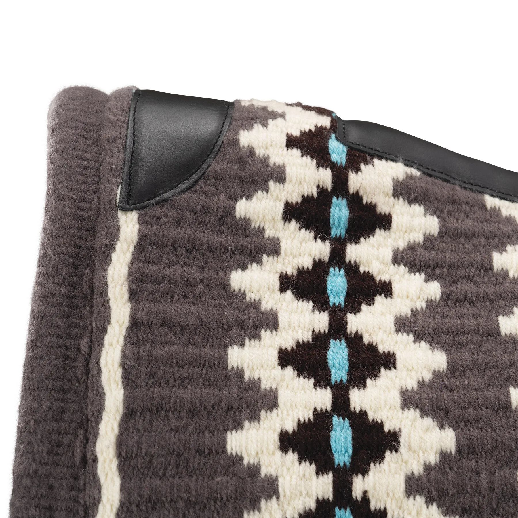 Turn heads in the show ring with this beautifully crafted blanket top pad, designed to blend rich Western style with performance comfort. Featuring a dense, tightly woven New Zealand wool top in striking shades of teal, tan, and gray, it's paired with a shock-absorbing 3/4" synthetic felt lining. Naturally antibacterial and moisture-wicking, it keeps your horse's back cool, dry, and comfortable, while the contoured design ensures a secure, pressure-free fit under your saddle.