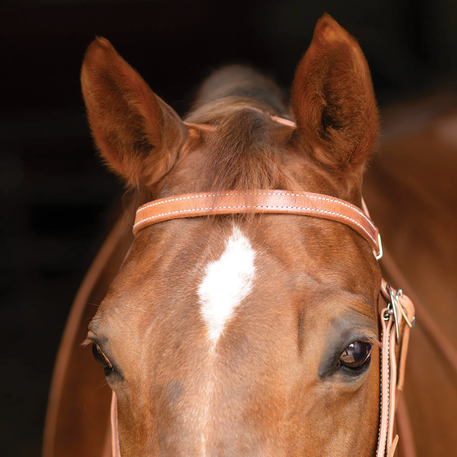 This Hermann Oak leather browband headstall is the perfect blend of beauty and durability, crafted to handle the demands of everyday work while maintaining timeless style. The slightly grained finish offers premium eye appeal, and the 3/4" wide leather construction is strong, flexible, and built to last. With stainless steel hardware and double adjustable cheeks, this headstall delivers reliable performance and a custom fit for training young or seasoned horses alike.