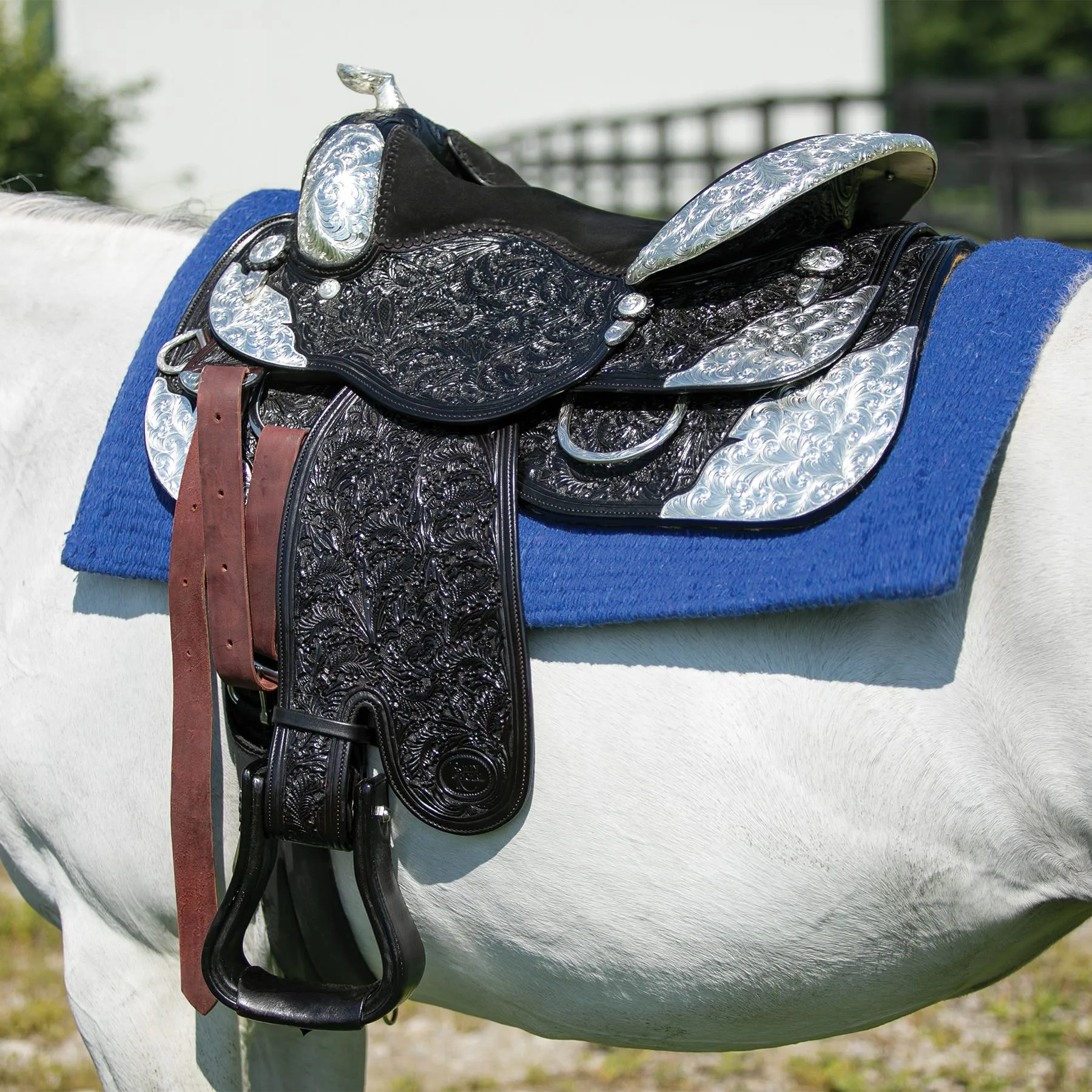 The Sedona Western Show Saddle is a well-crafted saddle ideal for shorter-backed or petite horses. This stunning saddle doesn't compromise quality, comfort, or visual appeal. It is completely handmade and boasts a sterling silver plated pommel, horn, and oversized corner plates for a rich, elegant look. Its design ensures excellent rider balance over the back, significantly reducing leg and foot movement thanks to its close contact features. This saddle is made from carefully-chosen hides and guarantees high quality and a supple feel that can withstand years of use.