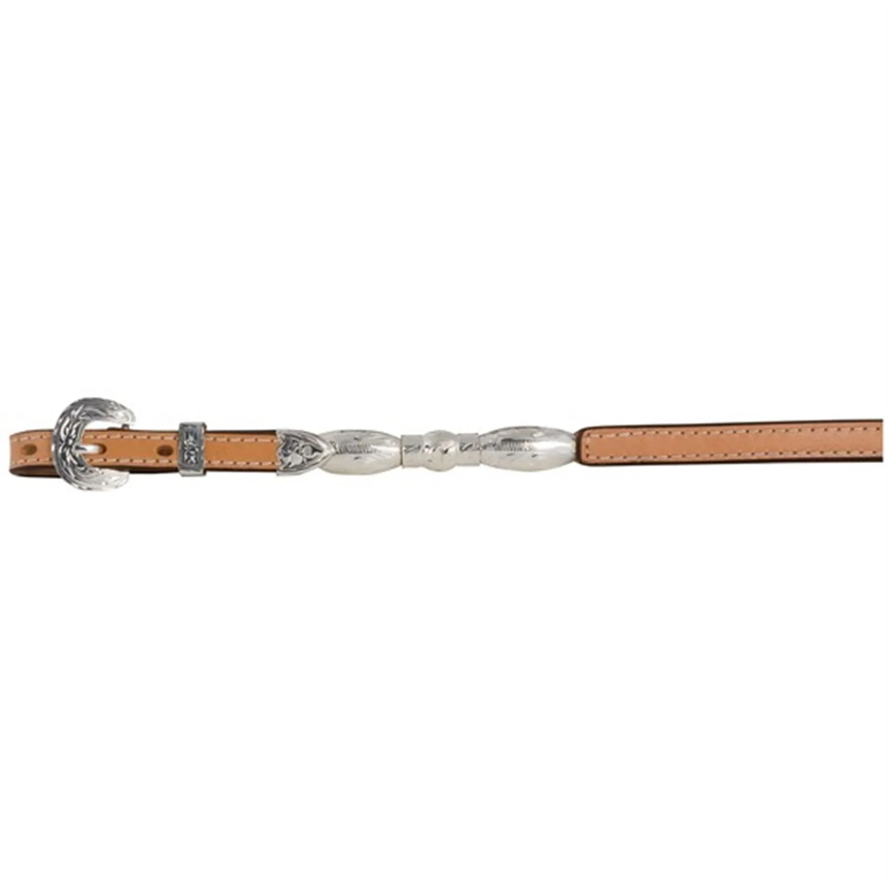 - Hand engraved Sterling Silver plate buckle, keeper and tip at the bit