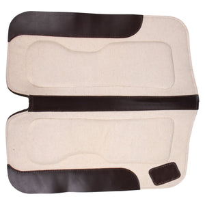 The Billy Royal® Wool Felt Pad with Memory Foam Panel is a superior Western saddle pad designed to distribute weight evenly across your horse's back for optimal performance. This pad features memory foam panels that enhance comfort while providing additional support along the shoulders, spine, and loin area. The pad has a 100% wool felt top for sweat and moisture absorption. Pad also features a 10mm thick memory foam inner panel and a 12mm wool felt bottom. Its two-piece construction shapes perfectly to your horse's back, and the cutback withers prevent rubbing or pressure points. The hind leather patch can be etched, making this pad an excellent award option for shows and year-end awards.