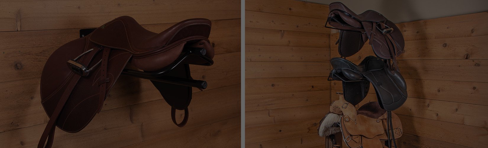 Tack rooms and storage areas can vary in terms of dimensions and layouts. To help determine the best use of available space for your saddles, take careful measurements and consider high-traffic areas, the direction of open doors, and where other equipment will need to be placed. Also, remember the proper height for you or others to lift each saddle off the rack. If a saddle is placed too high, you will experience difficulty grabbing it and may be tempted to stack it elsewhere, wasting precious space and leaving the rack empty.