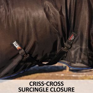 This air mesh sheet with an attached neck can be used as an ideal lightweight summer stable sheet with the benefits of ceramic sheets for horses. Ceramic therapy is a cost-effective and powerful rehab, recovery, and preventative maintenance solution. This sheet increases circulation and speeds up pre-performance warm-up to help keep your horse loose and limber while aiding in post-workout recovery or rehabilitation from injuries, soreness, and overall inflammation or arthritis pain.