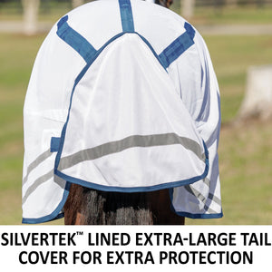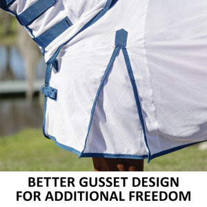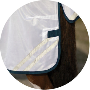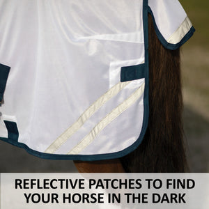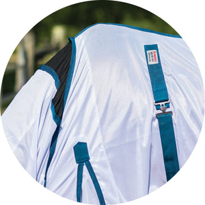 When looking for the best UV protection for your horse, look no further than this fly sheet. The attached neck and bellyband closure protects your horse from irritating insects and harmful UV rays from ears to tail. These sheets are made from a soft and comfortable 300D polyester interlock mesh material offering an impressive 80% UV protection level and the best protection against small to medium-sized insects, like gnats and flies. Plus, it features NEW reflective stripes for safety and SilverTek® technology with antibacterial nylon lining on the chest, shoulders, and tail flap.