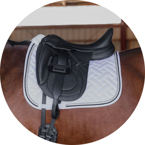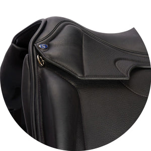 Elevate your ride with this Monoflap Dressage Saddle, expertly designed to deliver superior comfort, stability, and connection for both horse and rider. Made from premium calfskin-lined leather, this saddle provides a soft yet grippy texture, ensuring a secure seat and an unparalleled riding experience. Whether you're schooling or competing, this saddle combines luxury and innovation to keep you at your best.