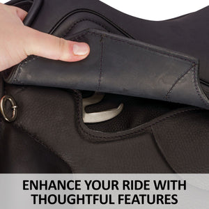 This saddle doesn’t just prioritize fit and style - it’s packed with features to improve your ride. From foam-padded knee rolls for extra cushioning to short blocks that allow freedom of movement, every detail is designed with the rider in mind. Standard stirrup bars offer compatibility with various leathers, giving you versatility in your setup.