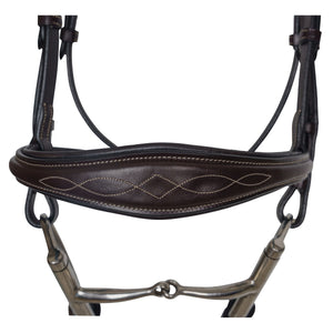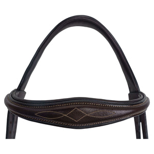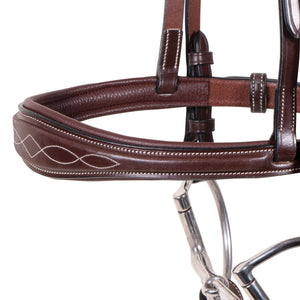 Joseph Sterling® bridles are stitched in a contrasting cream stitching. This bridle has fine fancy stitch detailing across the browband and noseband, making for a beautiful classic look on any horse!