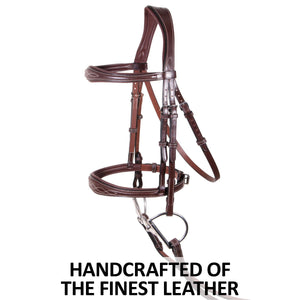 Crafted from the finest Sedgwick leather, this monocrown English bridle keeps your horse comfortable at home or in the show ring. The fully padded crown, browband, and noseband are anatomically designed to provide comfort to sensitive ears and nose. Featuring 15 stitches per inch, hand-rubbed beveled edges, and stainless hardware, this bridle is built to last. This bridle includes 5/8" x 54" matching laced reins that are raised with fancy stitching at the bit end.