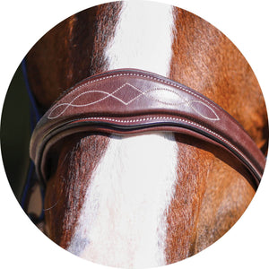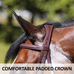 The padded crown is slightly shaped to taper around the ears and fully padded for added comfort to your horse.