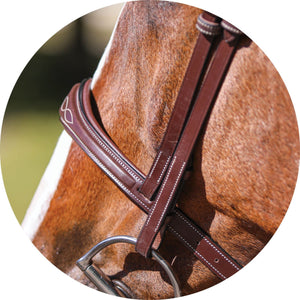 - Browband measures 1 1/2" at the center and tapers to 5/8"