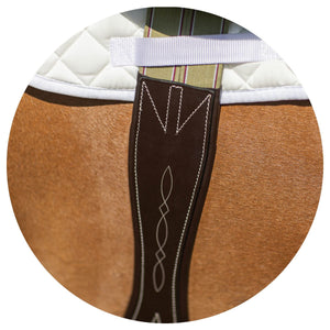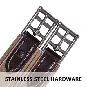 Triple-Ply Elastic on both ends of the girth offer nice stretch-ability that will adjust with your horses every movement offering a more comfortable girth than ones with out. Elastic also makes tightening your girth easier.