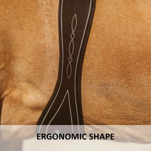Free up your horse’s natural movement by eliminating restriction in your horse's shoulders with this ergonomic hunt girth, featuring cut outs around the elbows. A better shaped hunt girth that is more comfortable for your horse. This English girth will pinch less, making training sessions more productive as the girth will fit better.