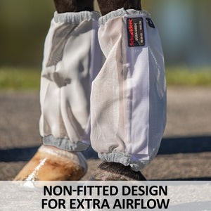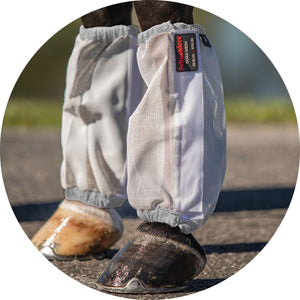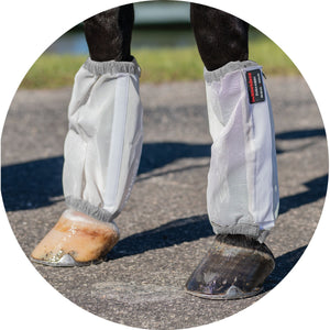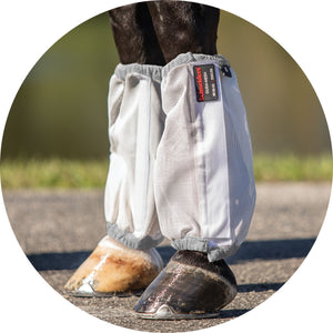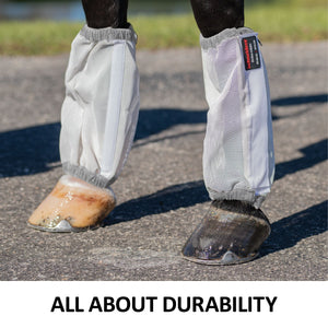 These fly boots are made from our most durable 1000D heavy poly/vinyl Dura-Mesh fabric that provides better airflow due to the open weave of the boots and 70% UV protection. The fabric offers insect protection that is best at protecting your horse from medium to large-sized flies, such as deer flies, greenheads, and horse flies.