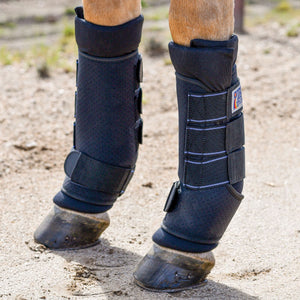 The Tekno-Dri® lining inside the wrap is a high-tech, wicking material that helps regulate the temperature and moisture around your horse's legs. The breathable neoprene outer shell also promotes airflow and ventilation. This keeps your horse comfortable and dry, even during long stabling periods or transport.