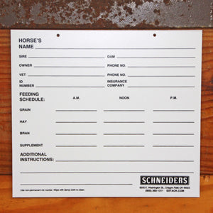 Schneiders® Plexiglass Stall Information Card