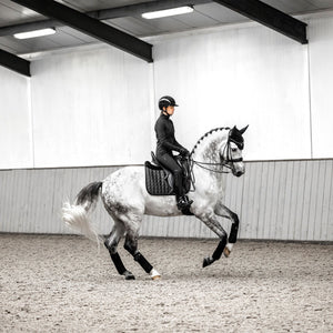 The LeMieux Loire Classic Dressage Saddle Pad blends classic style with modern performance. Featuring a lustrous satin finish and a soft bamboo lining, this pad keeps your horse comfortable and cool while turning heads in the arena. Its refined construction and thoughtful details make it a standout choice for dressage riders.