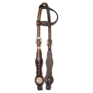 Schneiders® One Ear Diamond Tooled Two-Tone Silver Concho Ranch Headstall