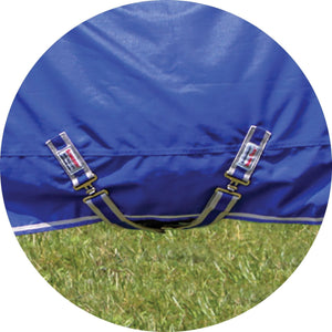 Detachable Elastic leg straps help keep the blanket in place. Our leg straps adjust from 20" to 38" and will stretch as horse moves. Set at optimum snugness and use the double brass-plated snaps for easy on and off.