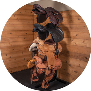 - Keeps saddles and pads clean and organized