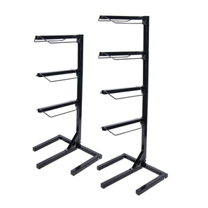 Say goodbye to clutter with this 4-tier Portable Multi- Saddle Rack! This sturdy, space-saving solution is perfect for organizing your tack room or show setup. Its stable, upright design effortlessly supports English or Western saddles while leaving you room to move. Built to last, this rack helps keep your valuable equipment clean, accessible, and off the ground.