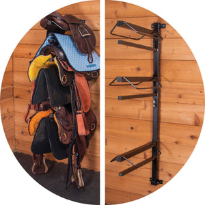Heavy Duty Mounted 4-Tier Adjustable Height Saddle Rack with Pad Racks