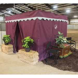 Horse Show Drapes and Stall Curtains create a polished presentation wherever you go. Our selection of durable, easy-setup horse show drapes are perfect for covering up end stalls, dressing rooms, tack rooms, and show stalls. Our drapes and stall curtains are available in an array of colors and personalized options that showcase your barn's uniqueness.