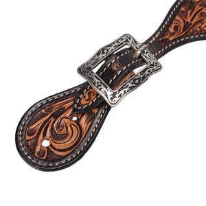Schneiders® Basketweave Leaf Tooled Western Spur Straps