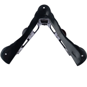 Fill your tack room with the exquisite Berlin Brass and Wood Black Saddle Rack that perfectly displays your English Jumping and Dressage saddles. This mountable saddle rack features rich black brass complimented with a polished and lacquered wood grain overlay. Add this saddle rack to your grooming stall, stall front, or tack room for an exquisite look!