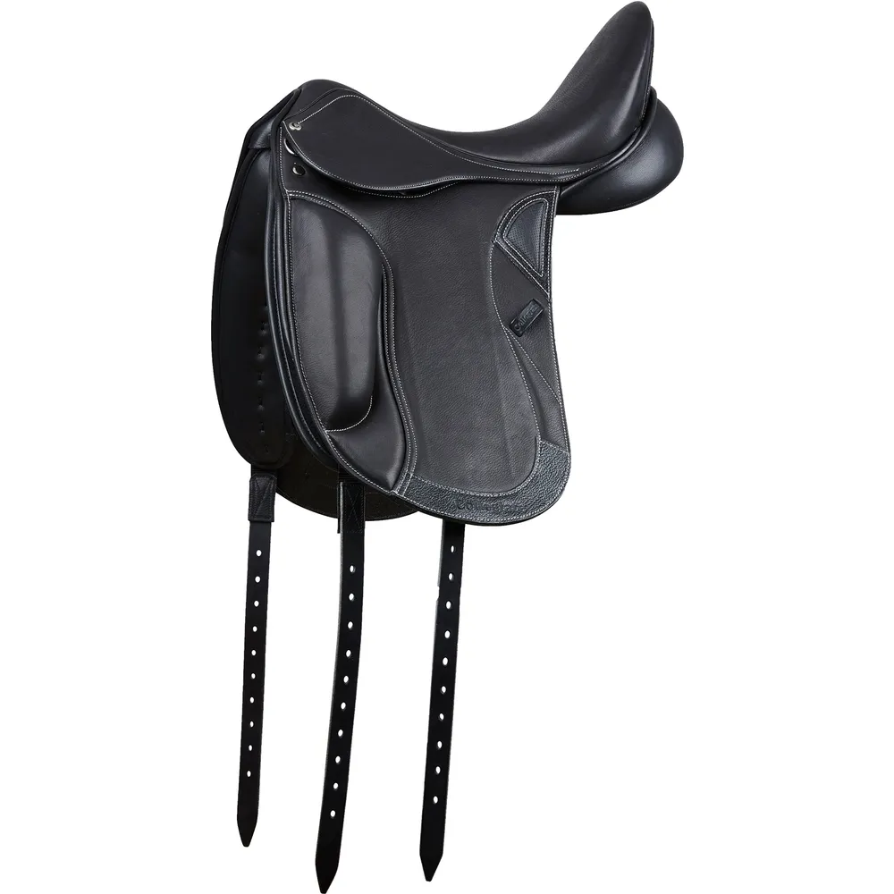 The Collegiate Integrity Mono Dressage Saddle blends close contact performance with classic craftsmanship. With its sleek monoflap design, deep seat, and generous front blocks, this saddle is designed to enhance communication between horse and rider while offering maximum support. Crafted from soft, naturally tanned leather, it combines comfort, stability, and adjustability for every ride.