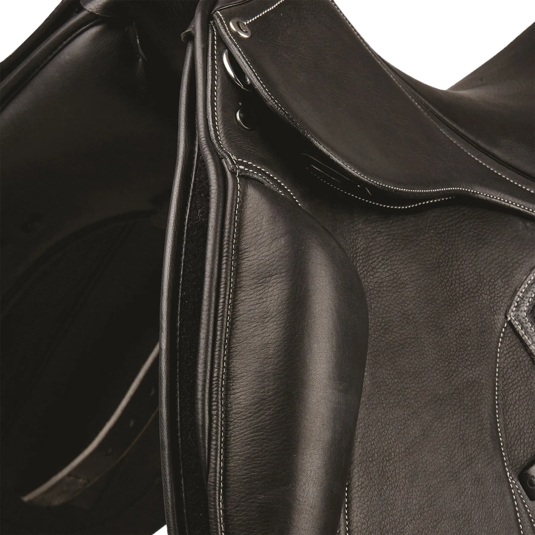 - Deep seat and monoflap design for close contact and rider security