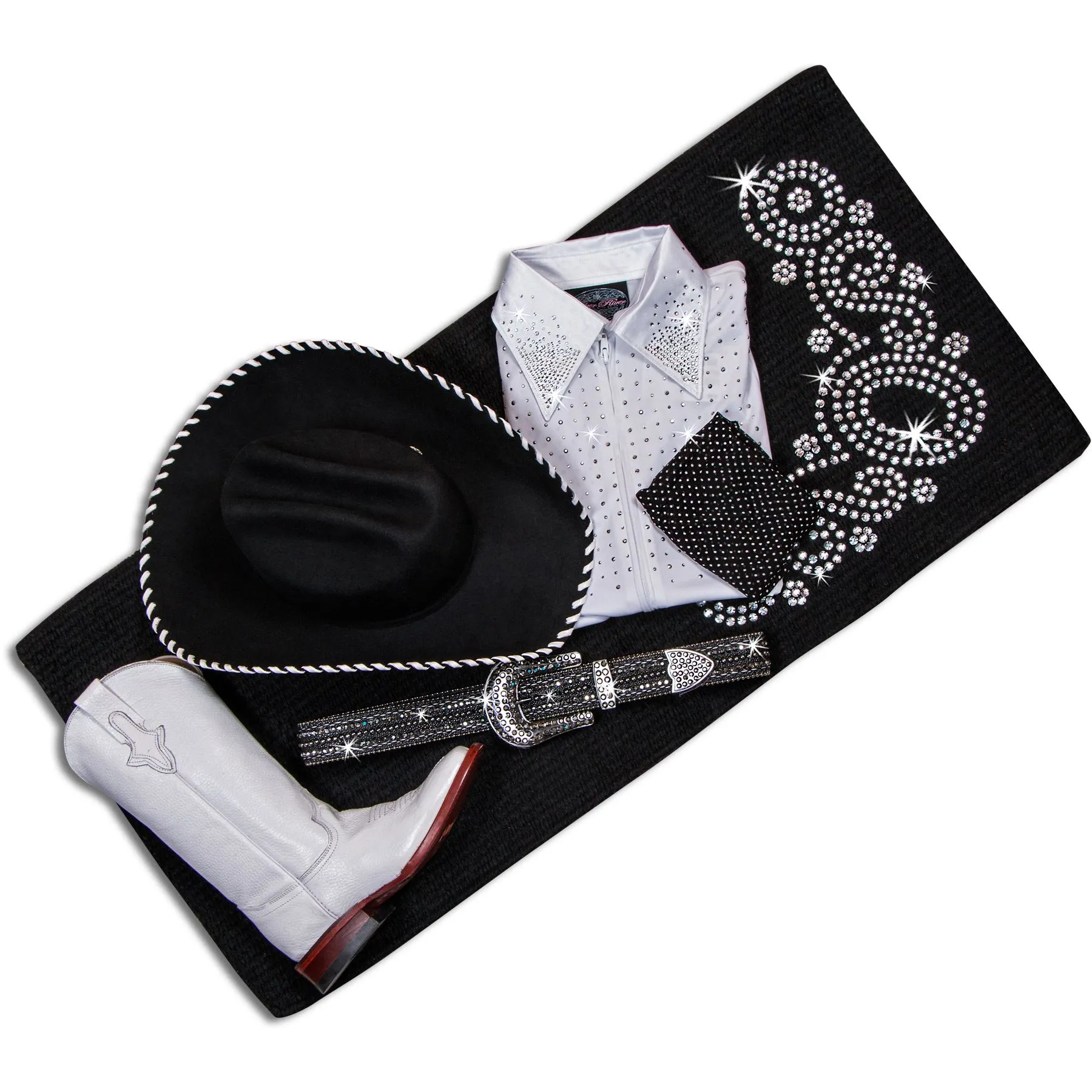 You'll have no problem being seen as you 'sparkle' along the rail. The Sparkle Show Shirt has the look and feel of expensive brands and gives riders a neat and professional appearance. Hundreds of crystals cover the front, back, sleeves and collar of the shirt to put on a brilliant, sparkling performance in every corner of the ring.