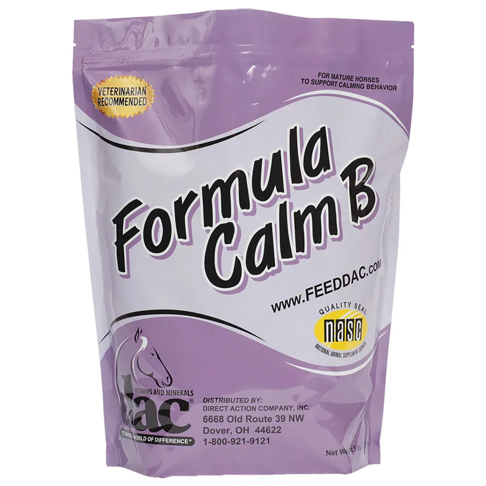 - Feeding Directions: dac® Formula Calm B can be fed with either fortified or unfortified grains. Fortified grains contain added vitamins and minerals. Feed dac® Formula Calm B at the following rates: Feed one scoop (1 ounce) per horse per day. Feeding rate based on 1000 lb horse.