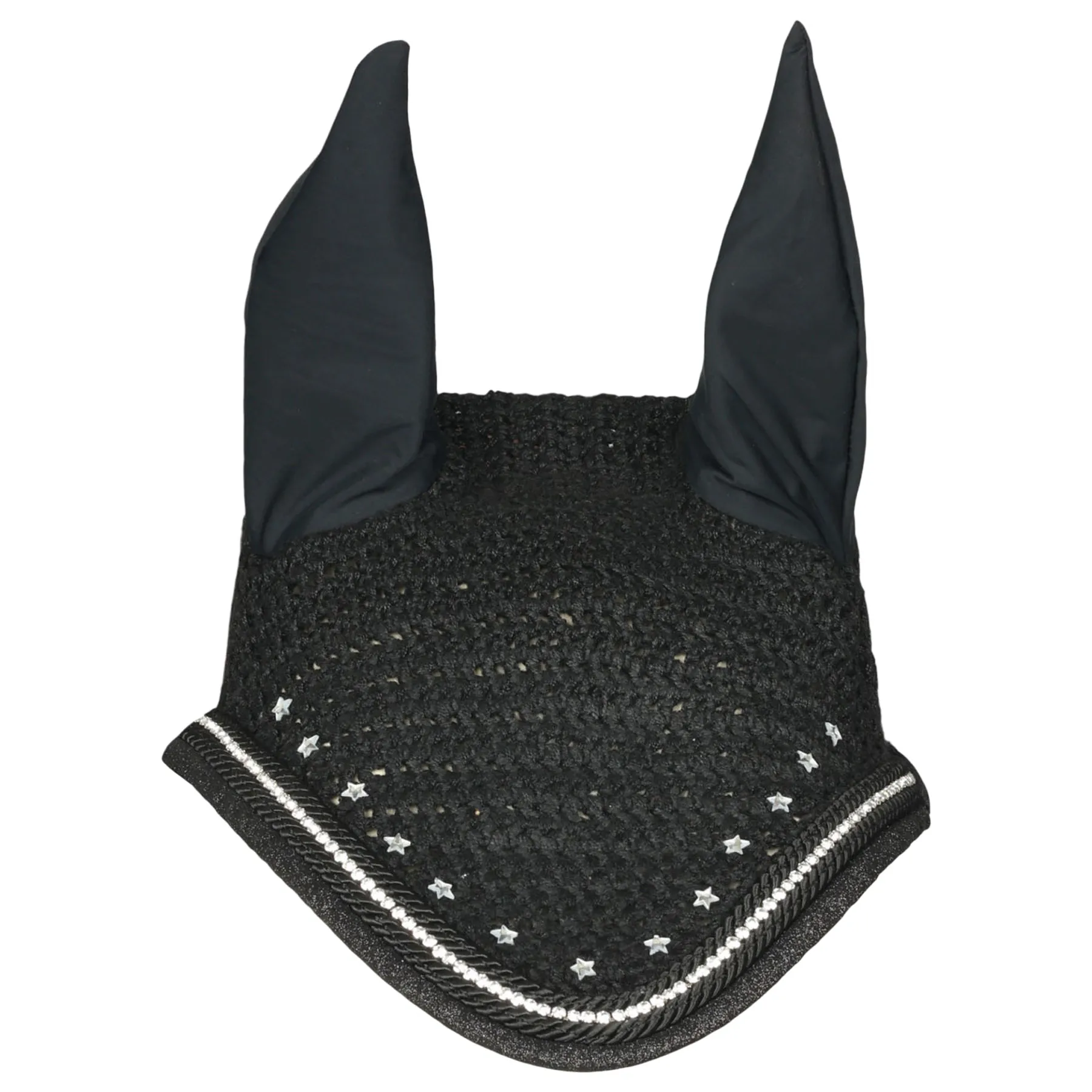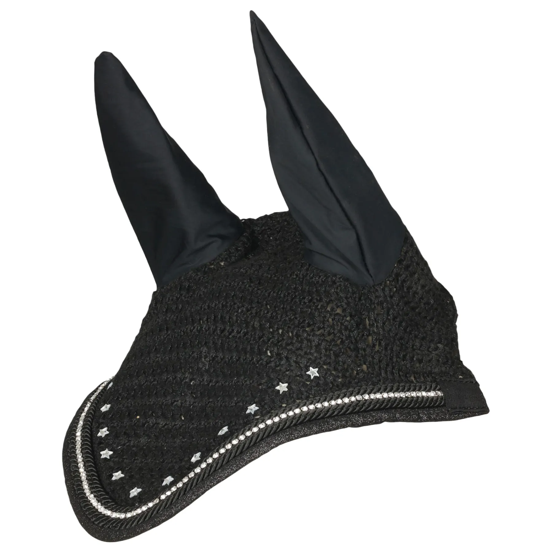 Bring a touch of glam to your show look with the Dapplebay Shine On Fly Veil, part of the dazzling Shine On Collection designed in collaboration with influencer Marina Layton. Featuring sparkling star crystals, luxe trim, and glitter binding, this veil isn't just for show, it's a powerful reminder to ride with poise. With the inspiring phrase "Eyes Up, Heels Down" stitched where only the rider sees, it's both beautiful and boldly motivational.