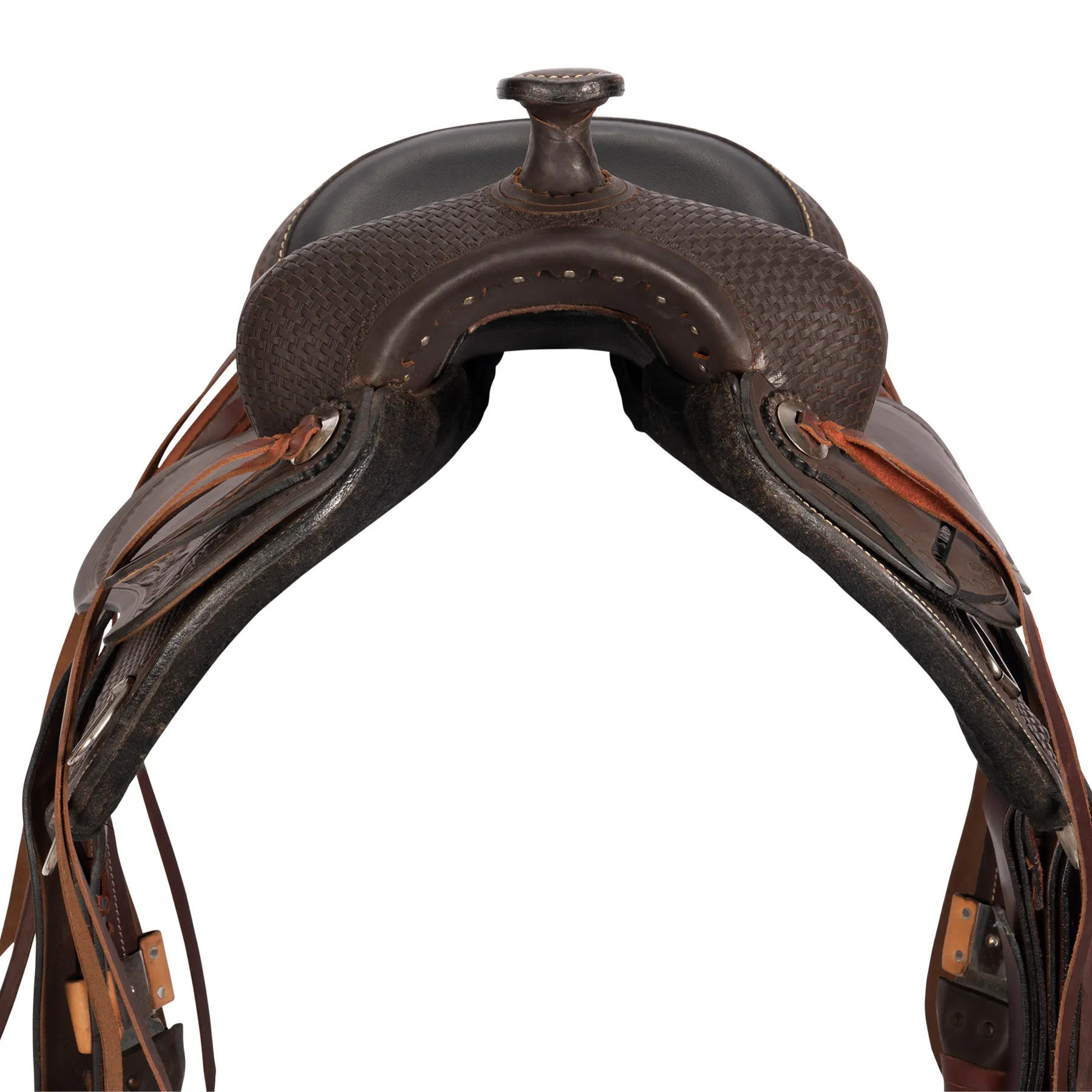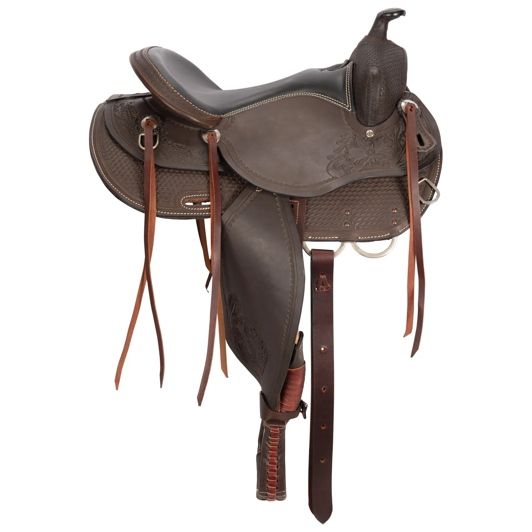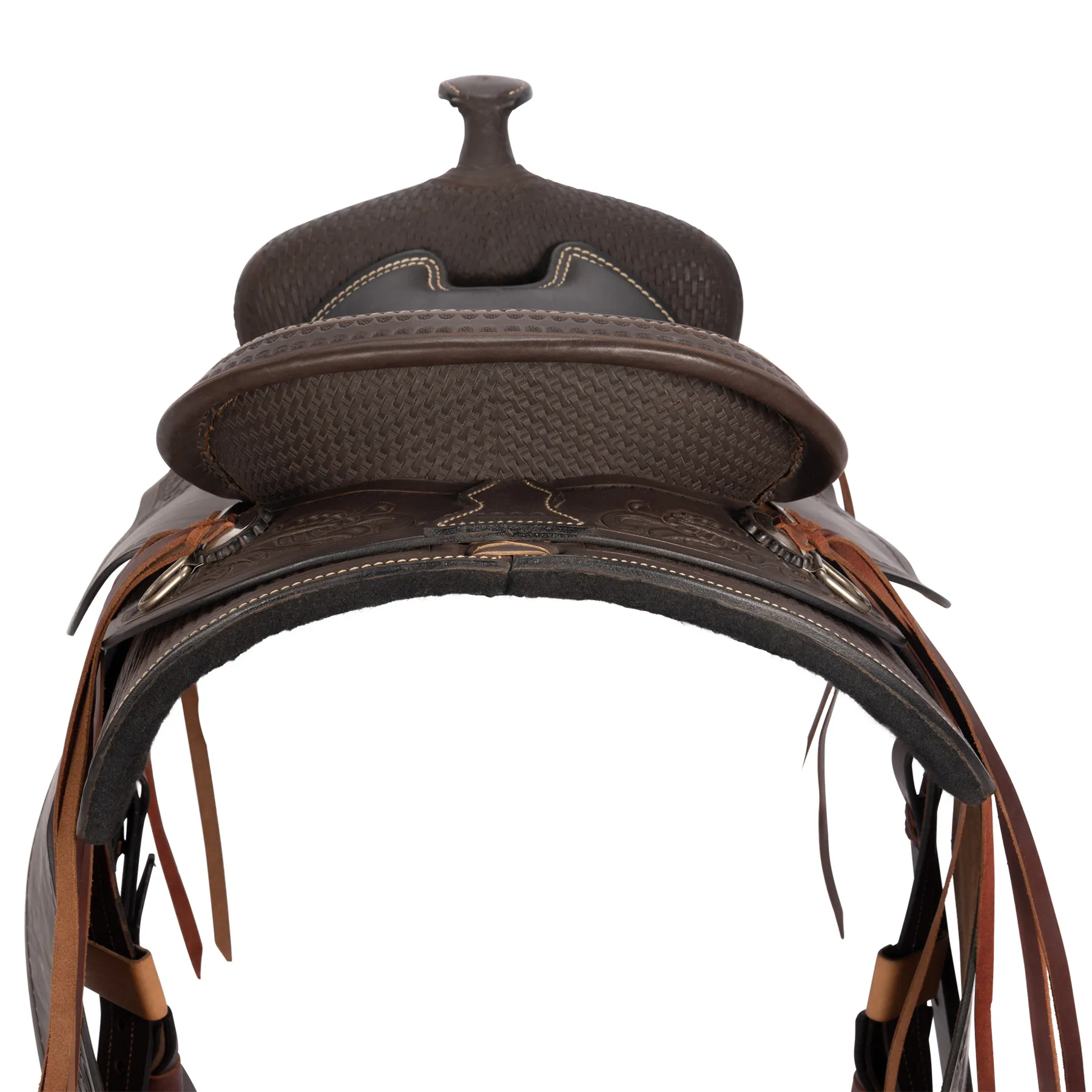 Ride in comfort and style in this Western Saddle, a lightweight, beautifully tooled saddle designed for relaxed, enjoyable rides. Featuring a padded suede seat and a balanced build, this saddle offers a comfortable fit for both horse and rider. Hand-tooled detailing adds western charm, while its fiberglass tree and stainless steel hardware ensure durability you can count on.