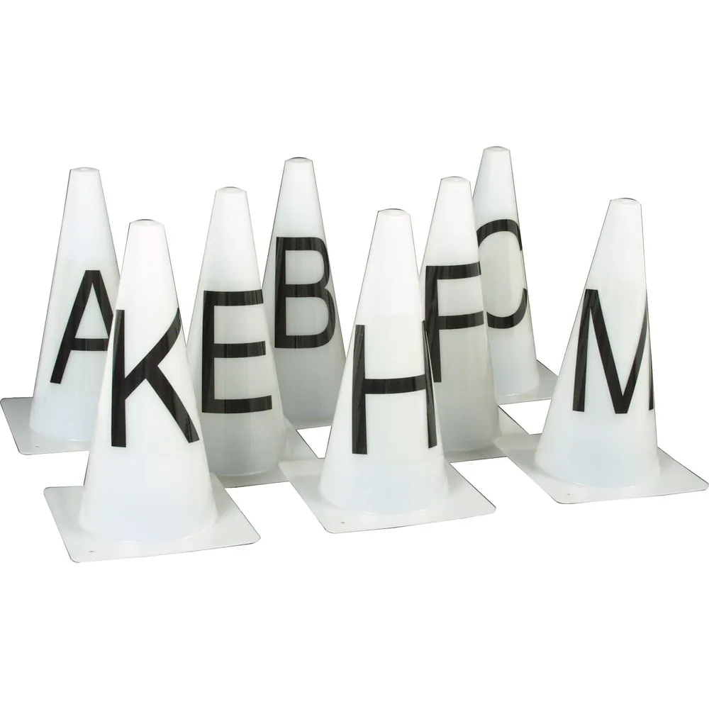 Complete your 40-meter Dressage arena with these training cones bearing the dressage letters A, F, B, M, C, H, E, and K. Made with molded plastic, these cones are lightweight. If desired, you can mount the durable dressage cones to a heavier base using the pre-drilled holes.