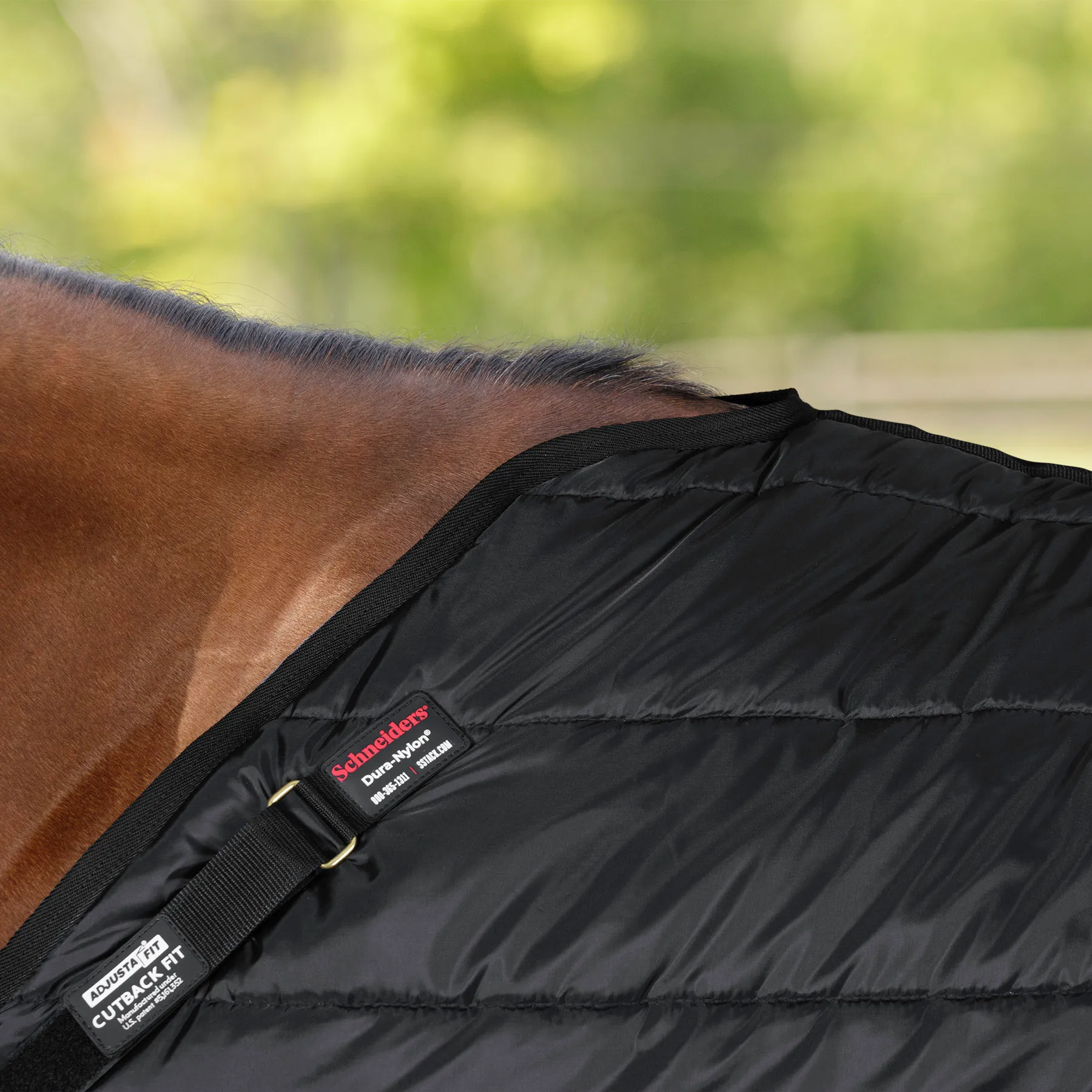 When you need a blanket liner, for horses with high-head carriage, that gives extra warmth without the bulk, this soft, warm liner provides a convenient insulation layer. This blanket liner is perfect for use under any cutback wither style blanket or sheet. Insulated with fiberfill, the liner is breathable while also wicking away moisture. It is durable, withstands frequent machine washings, and makes it easy to keep a clean, warm underlayer next to your horse. The shoulder cutout design reduces bulk, improving your horse's comfort and flexibility while wearing multiple layers.