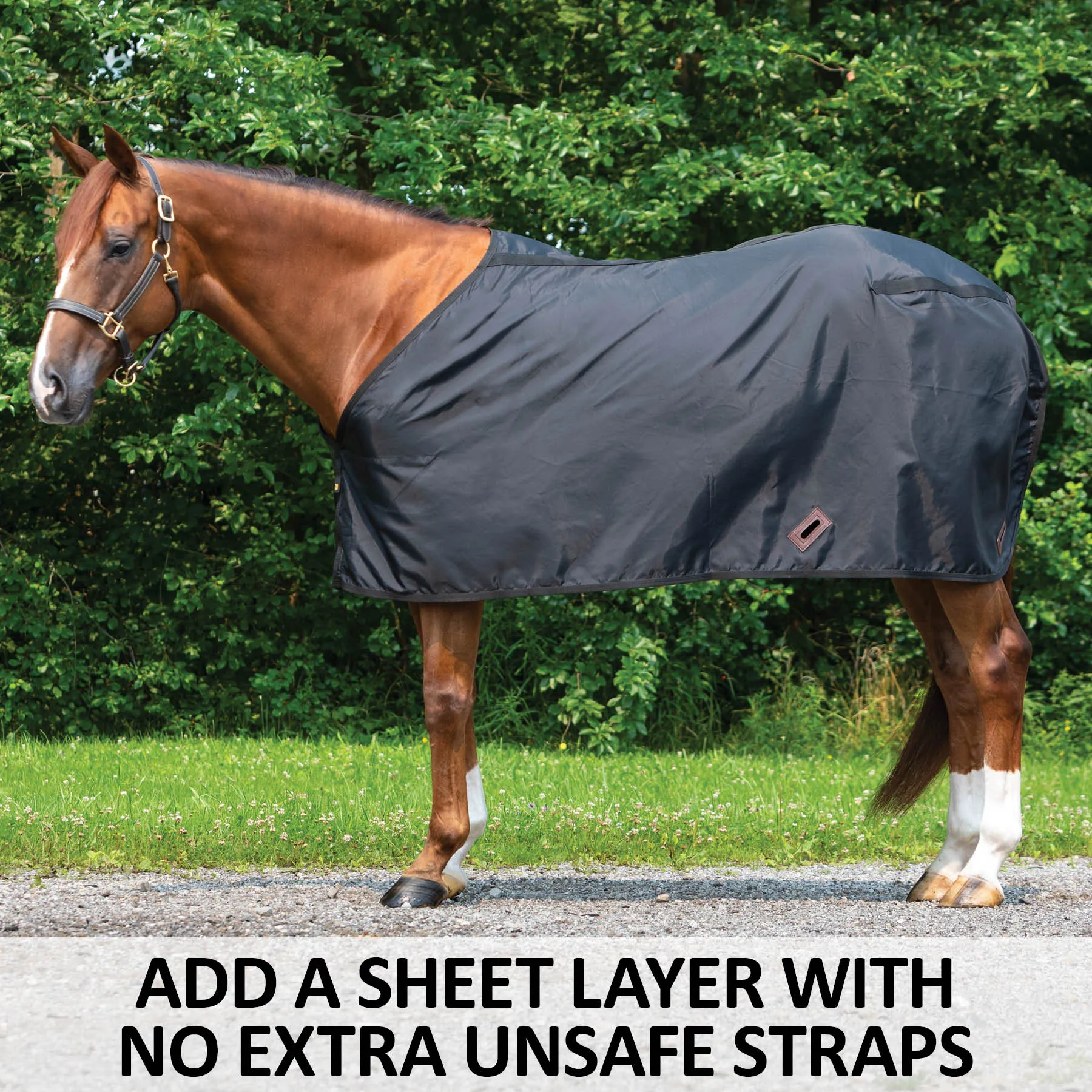 Our Signature 420D nylon sheet material now made in a lightweight sheet liner. Add an extra layer without the extra straps to get in the way. A sheet liner is perfect to add instead of doubling up sheets or adding sheets under heavier blankets. Leg straps from the top blanket feed through the leg slots of the liner to connect the 2 pieces and hold them in place.